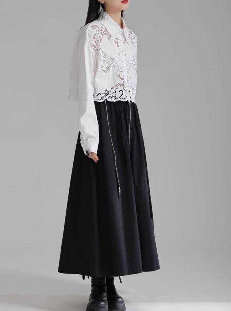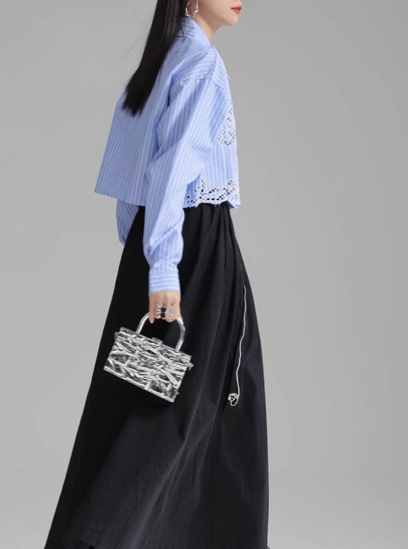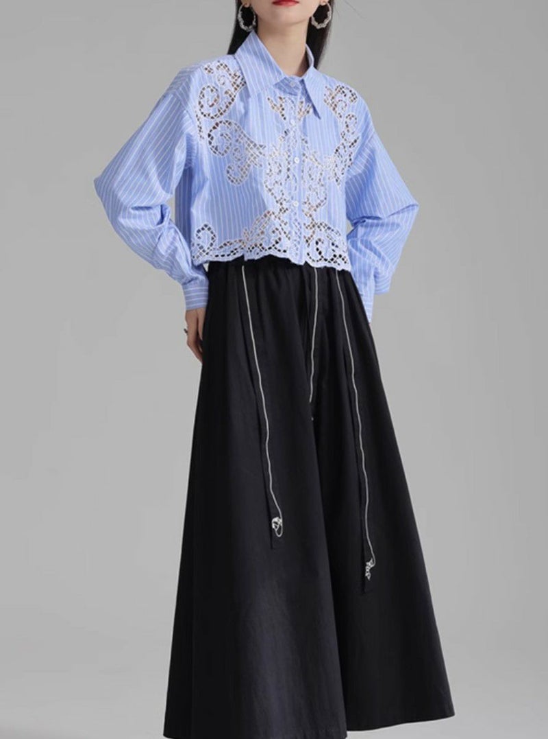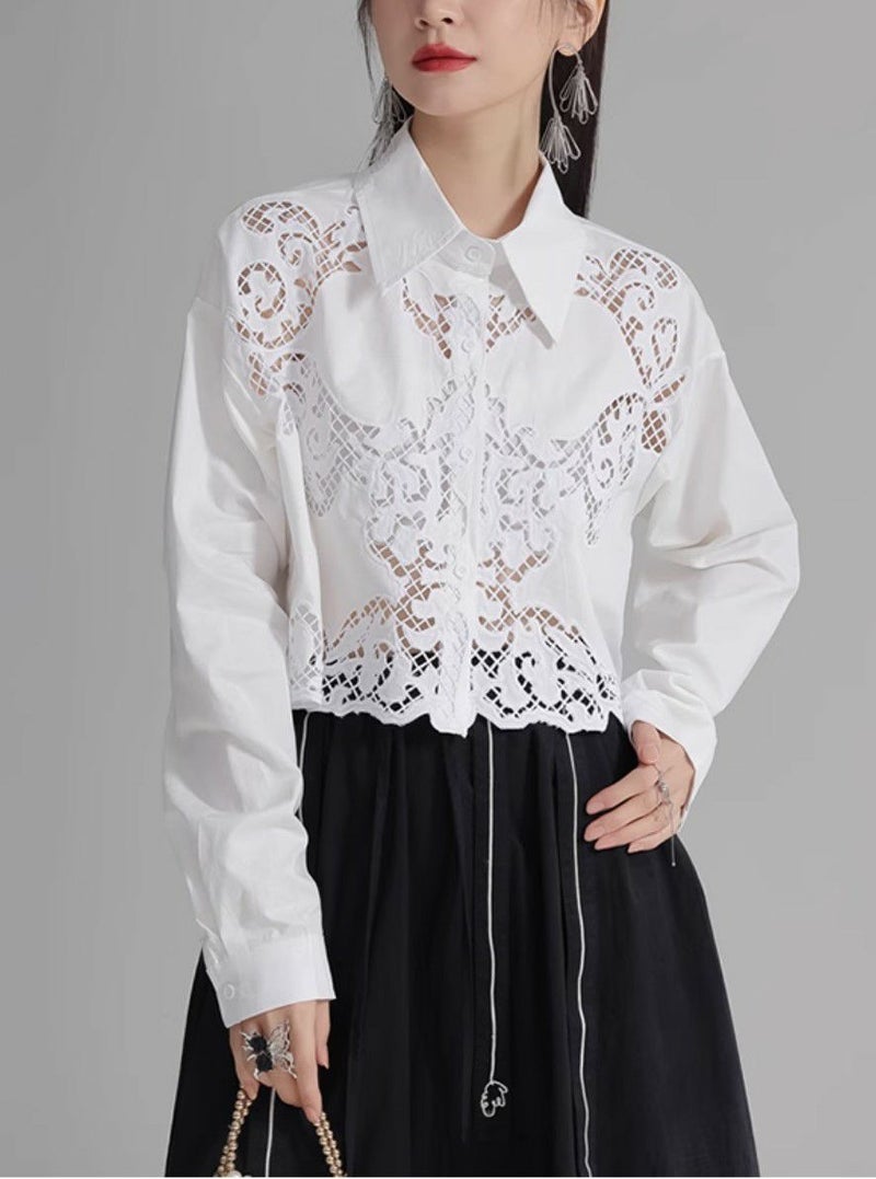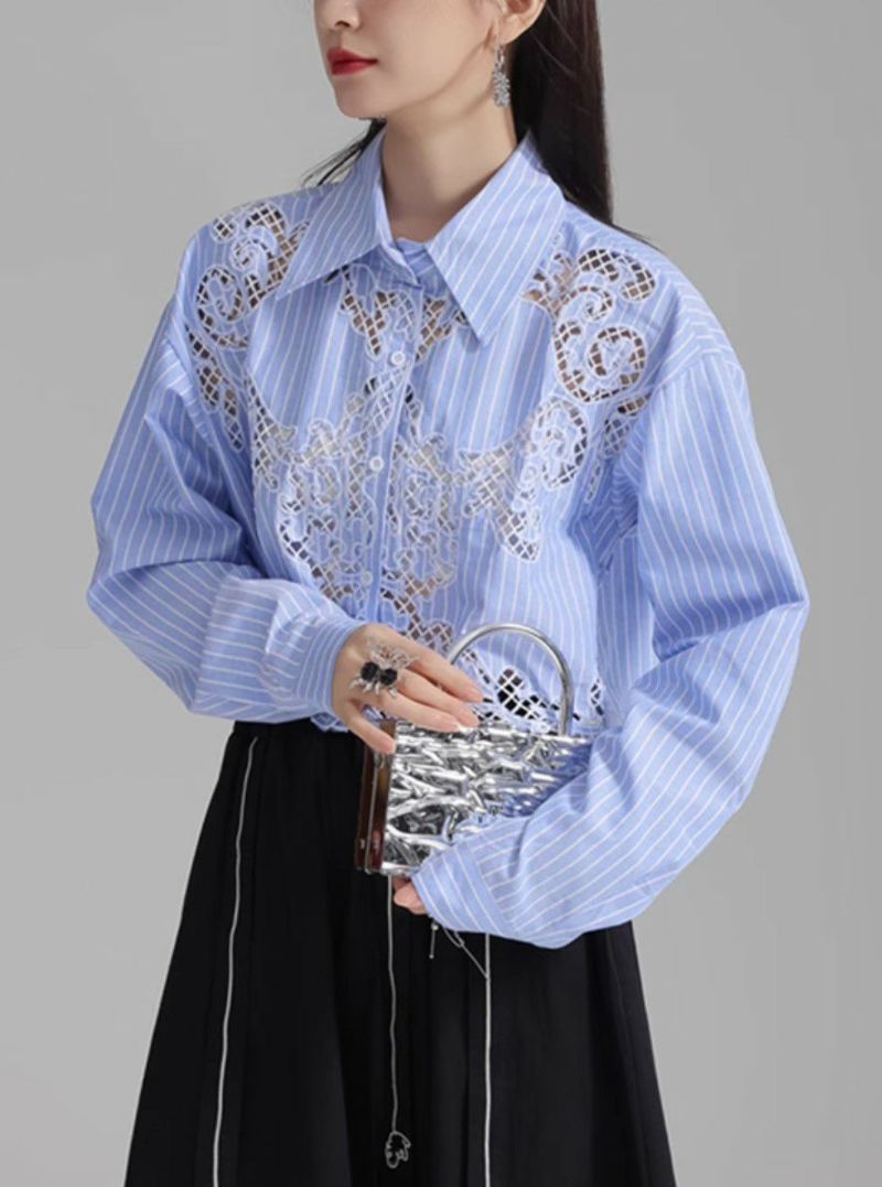 トレンドのミニマルな丈もコーデを一新してくれるレースシャツ