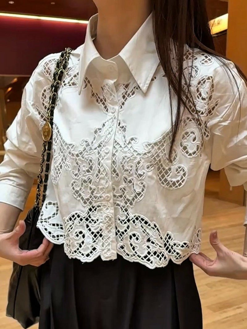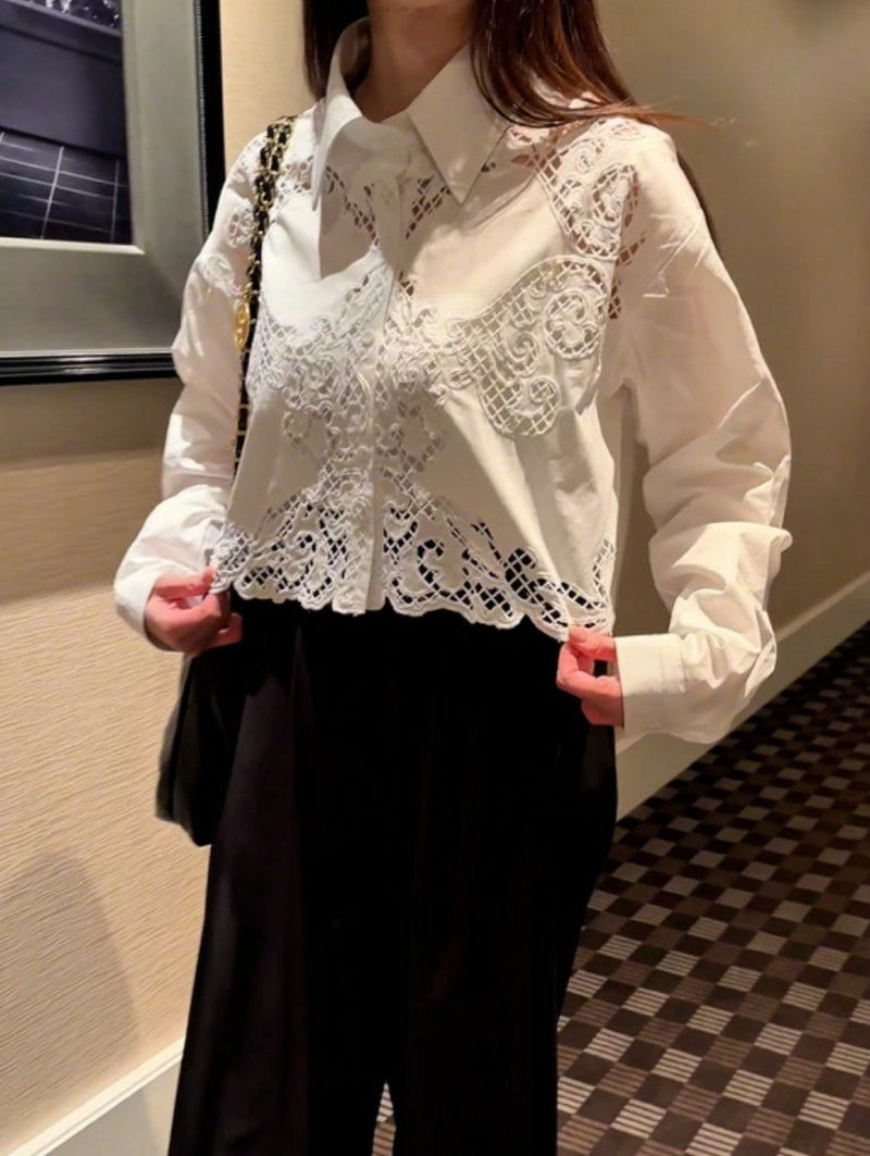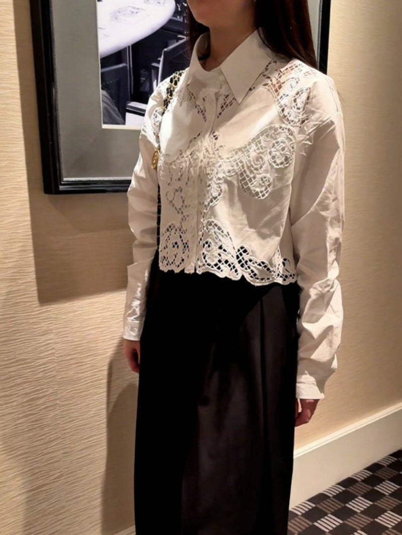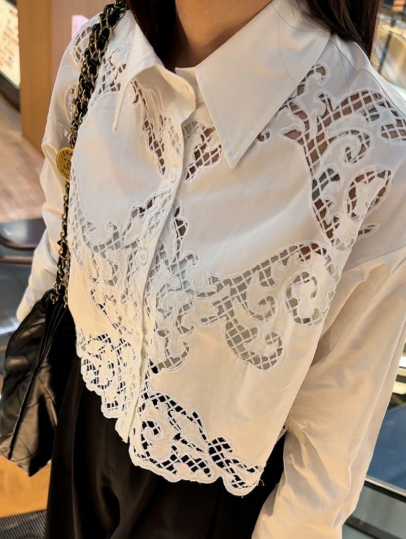 予約 3color カットワーク フラワー シャツ