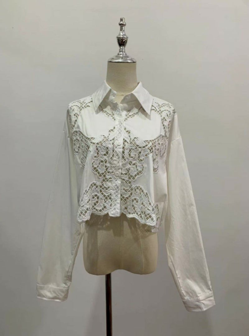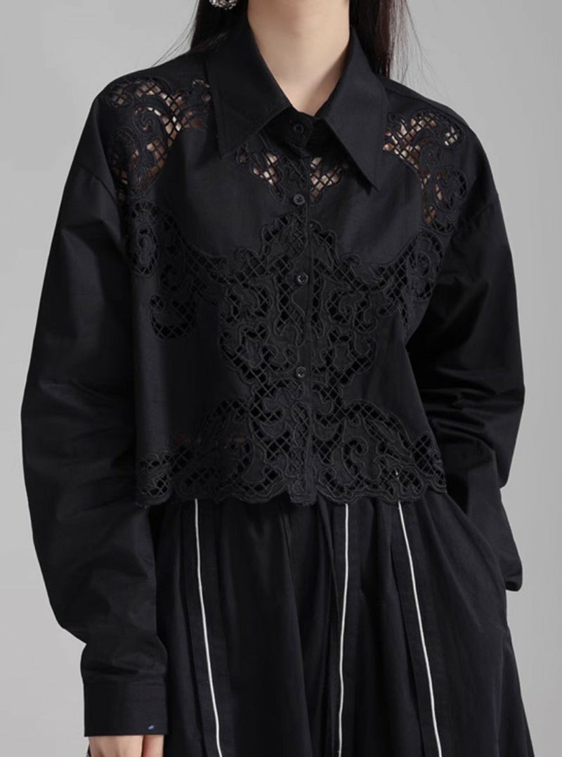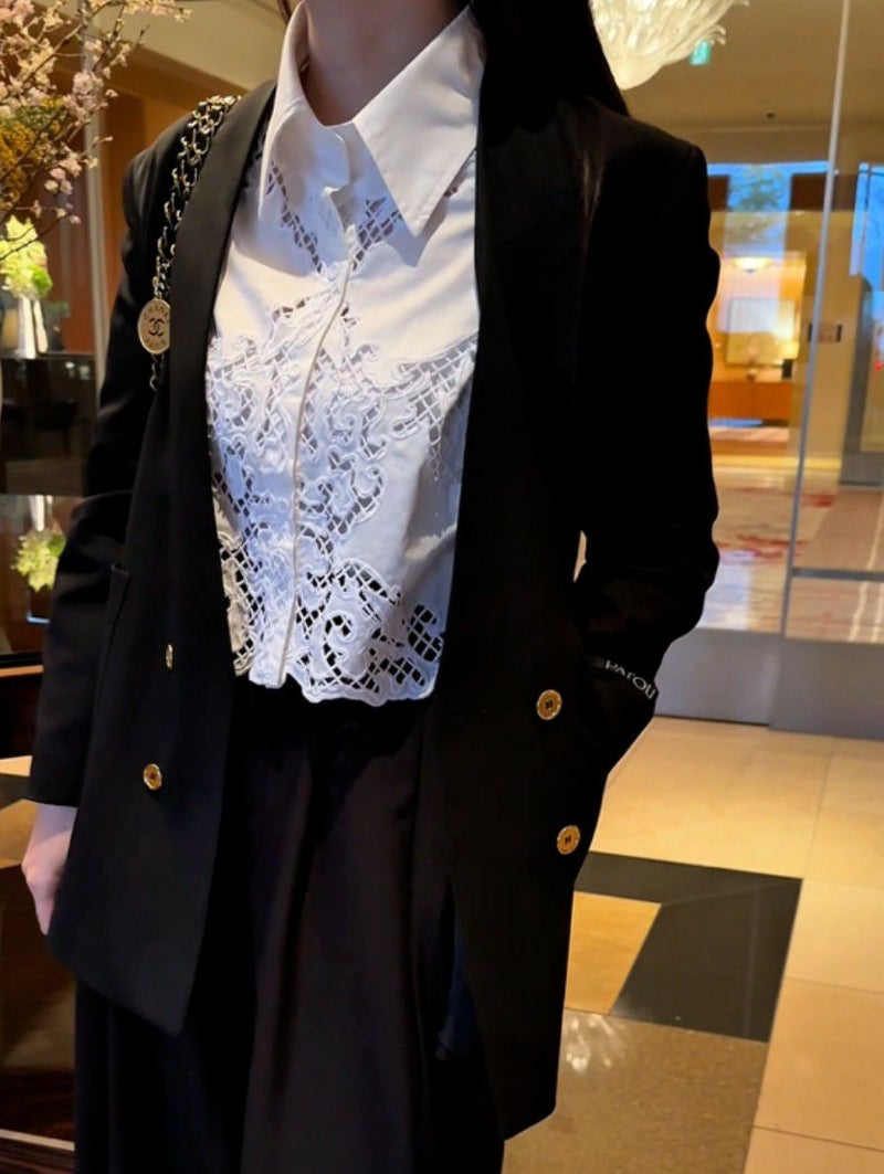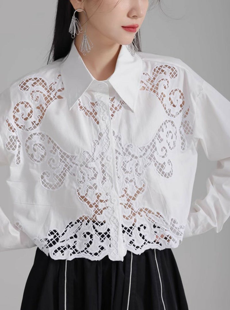 予約 3color カットワーク フラワー シャツ
