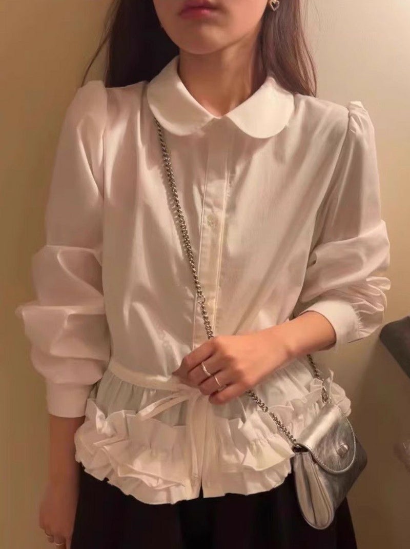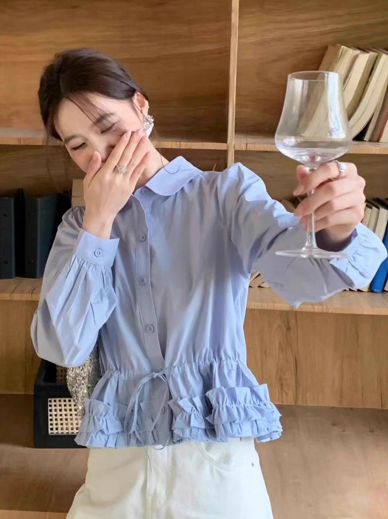 予約 2ccolor ペプラム フリル ウエスト切替 シャツ