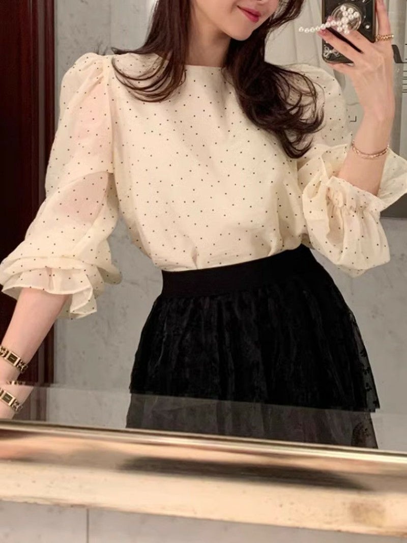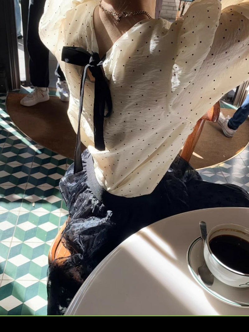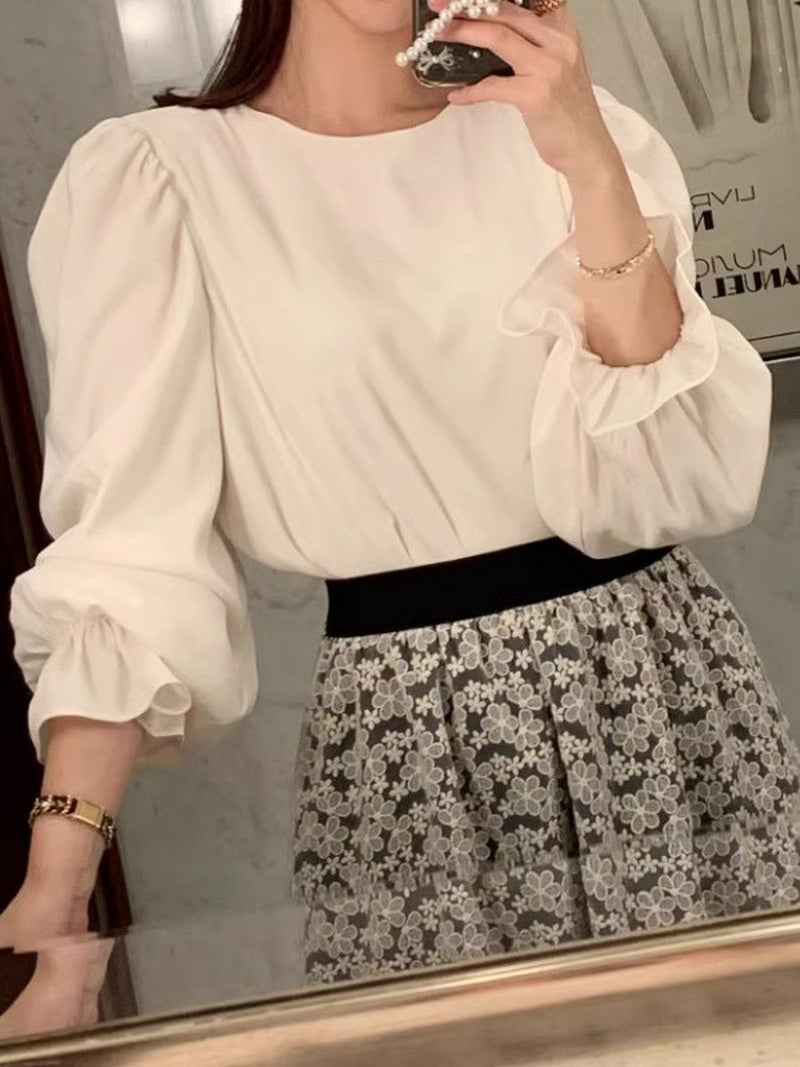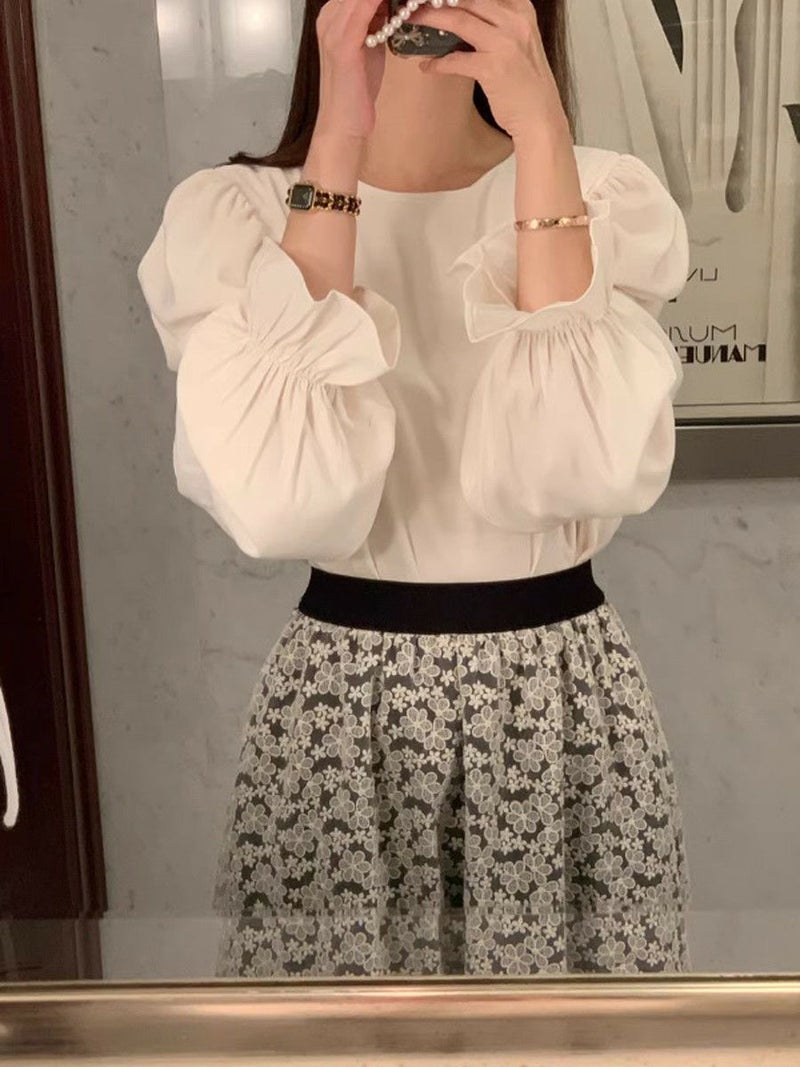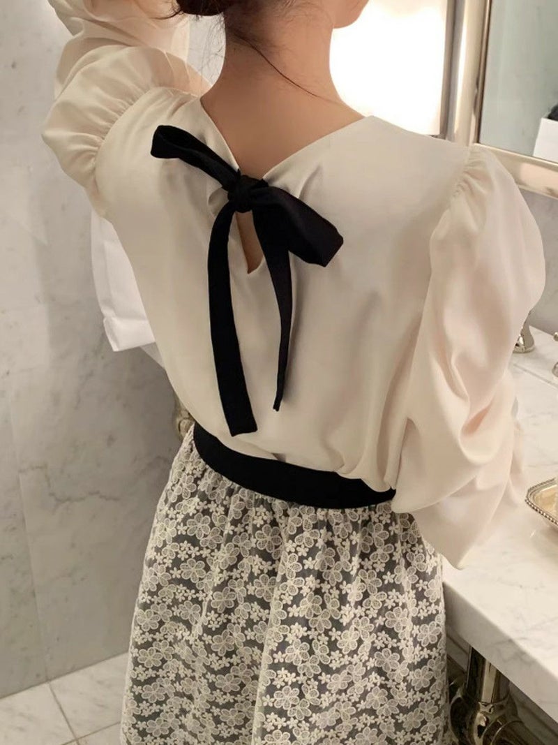予約 2color バックリボン ベルスリーブ シフォン シャツ