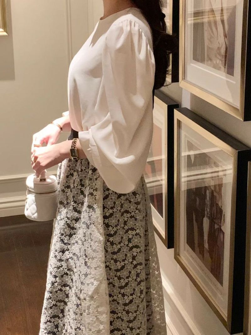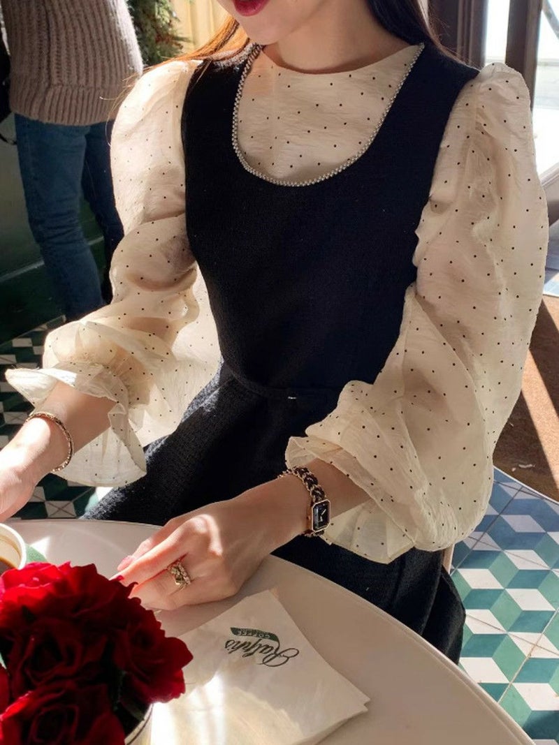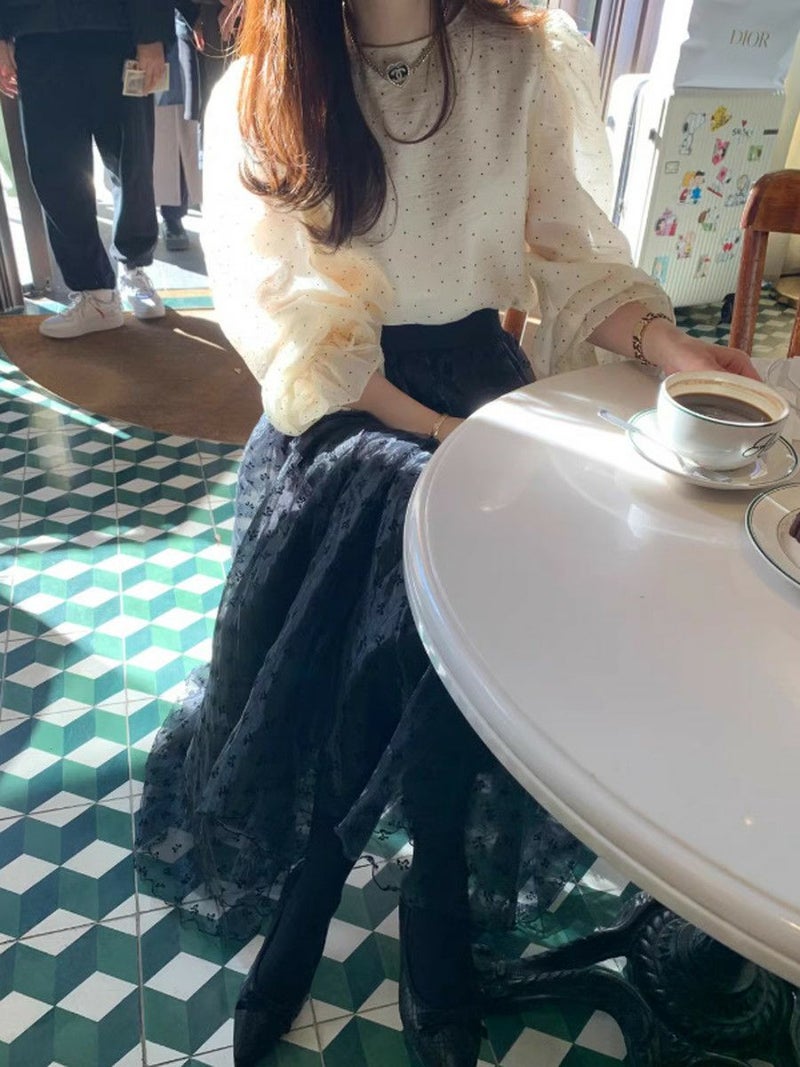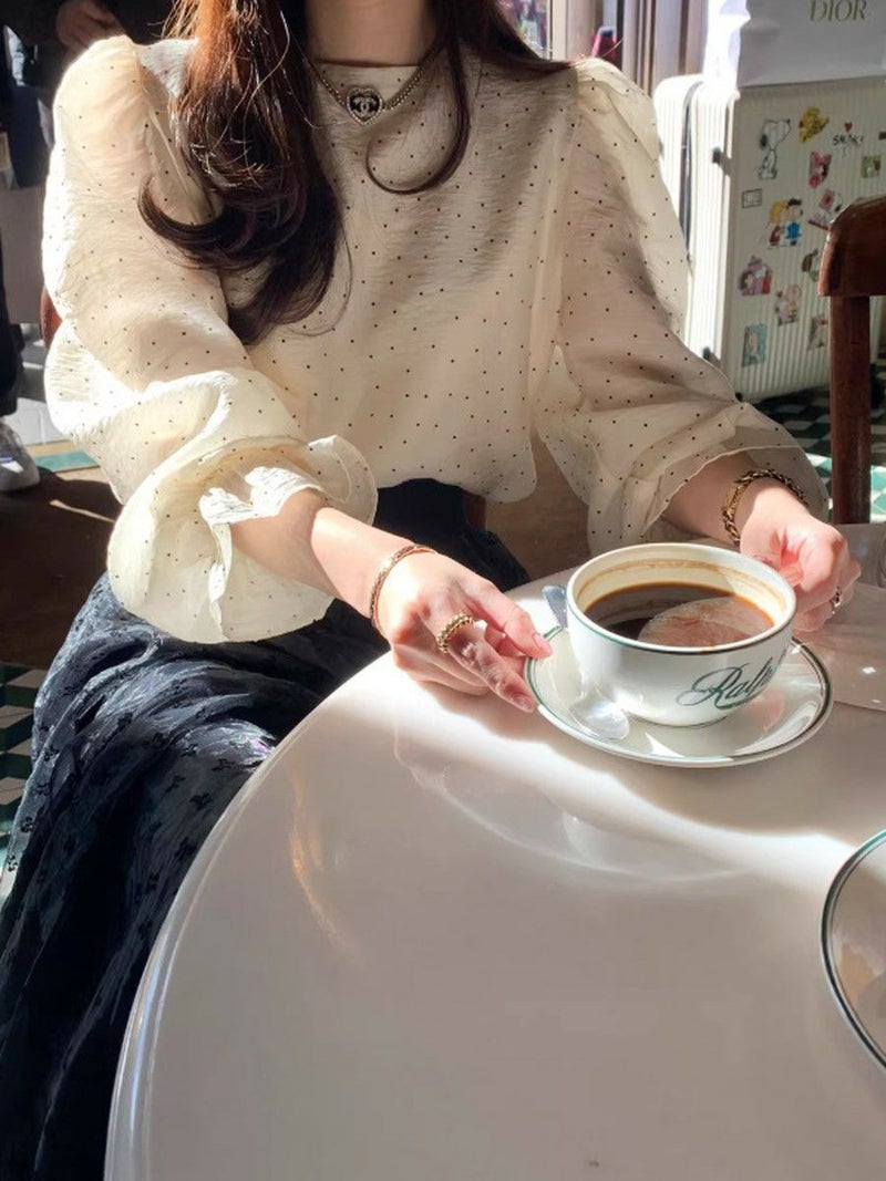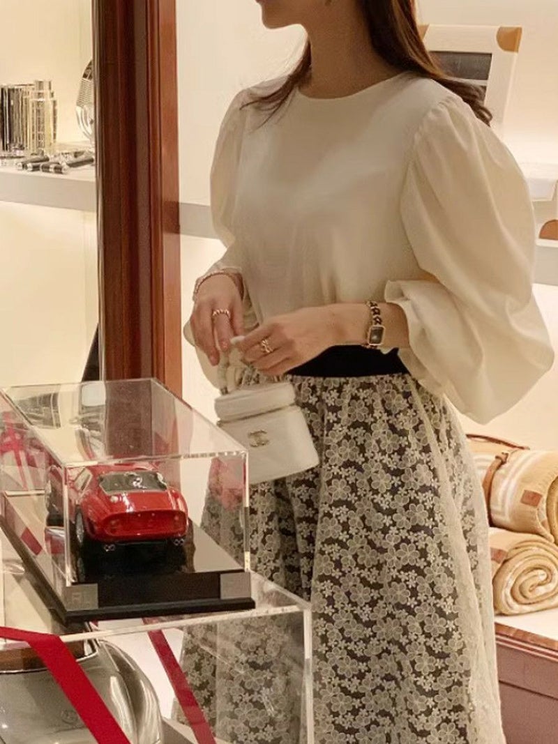 予約 2color バックリボン ベルスリーブ シフォン シャツ