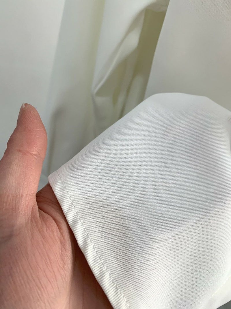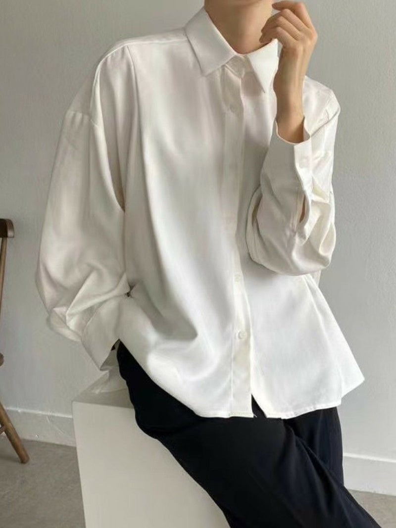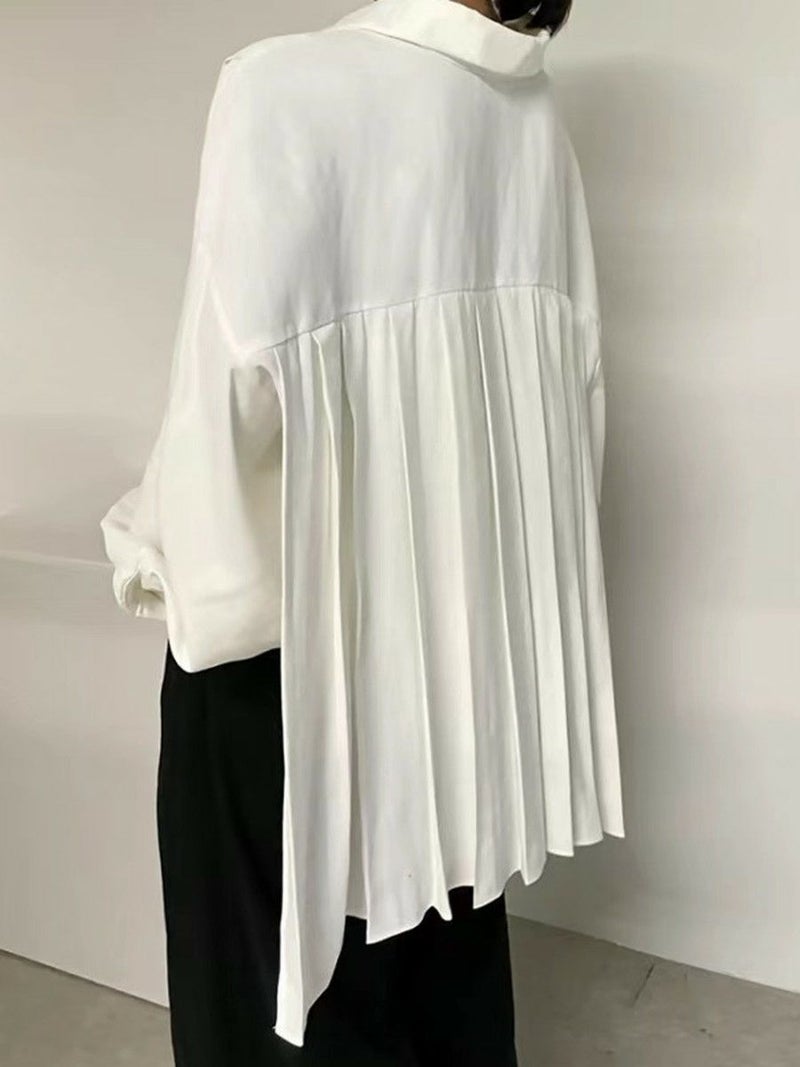 バックスタイルがプリーツになったキレイめシフォンシャツ