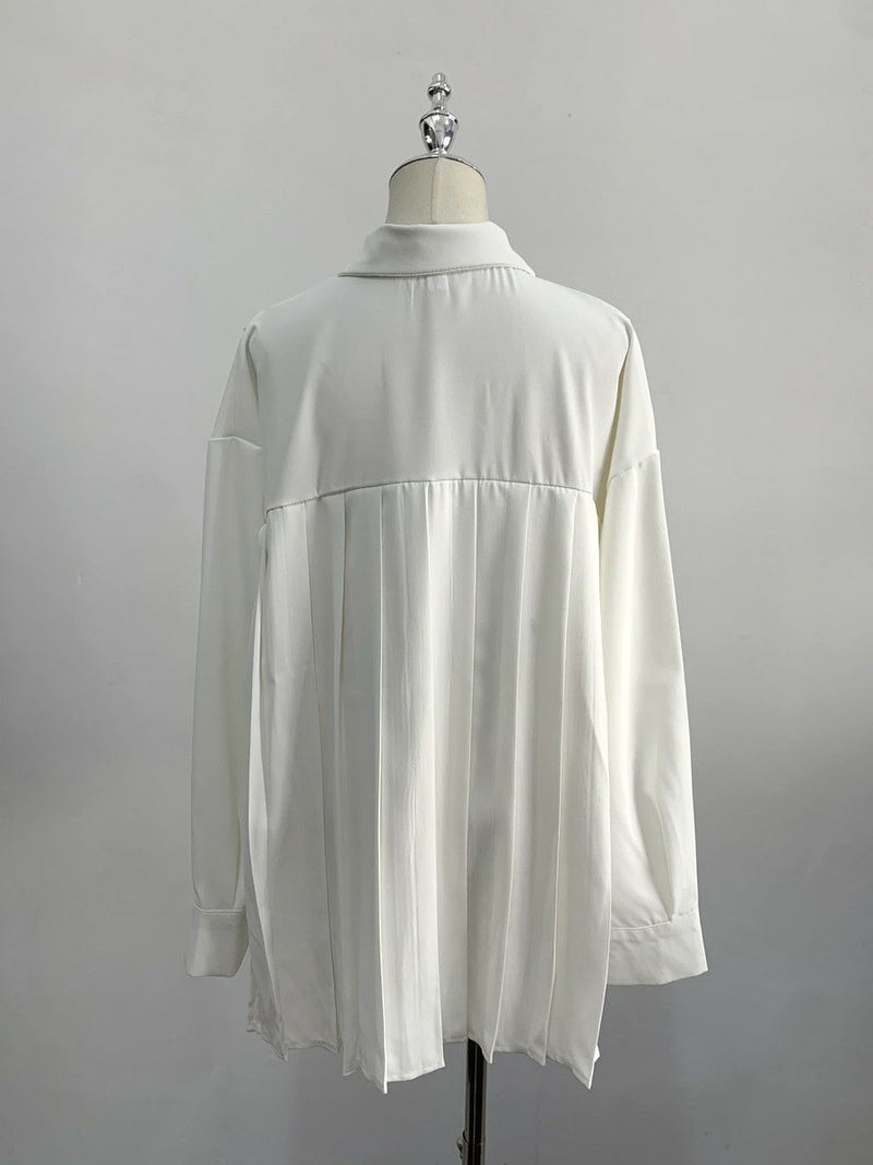 予約 2color バック プリーツ シフォン シャツ