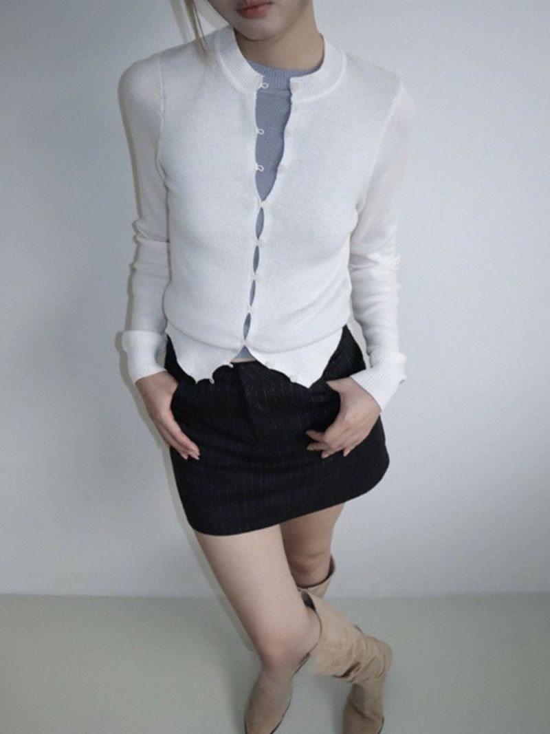 予約 3color ボタン ポイント カーディガン風 ニットプルオーバー