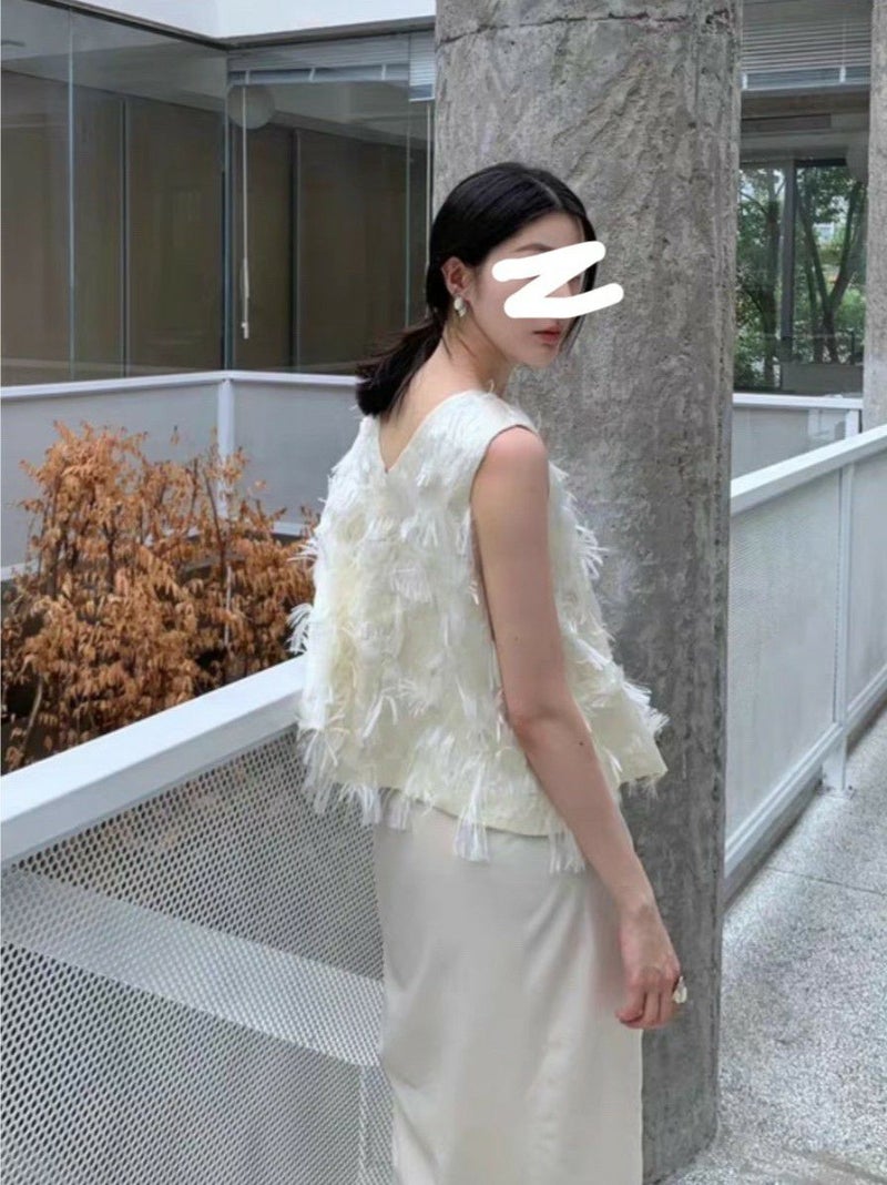 一枚でコーデが華やかになる人気のフェザートップス