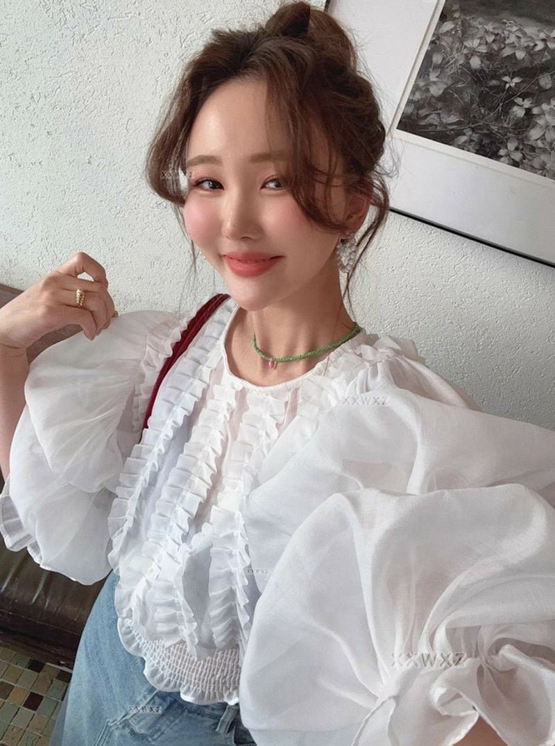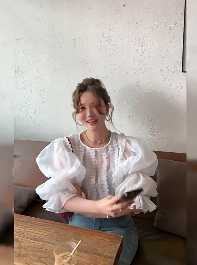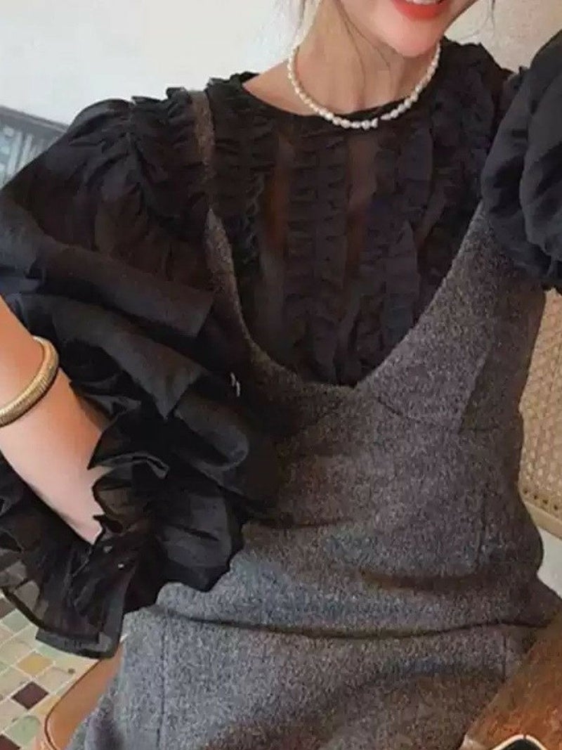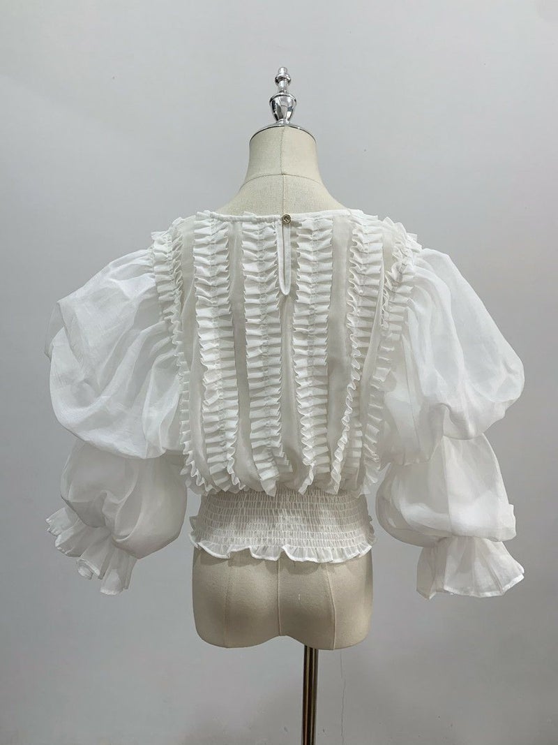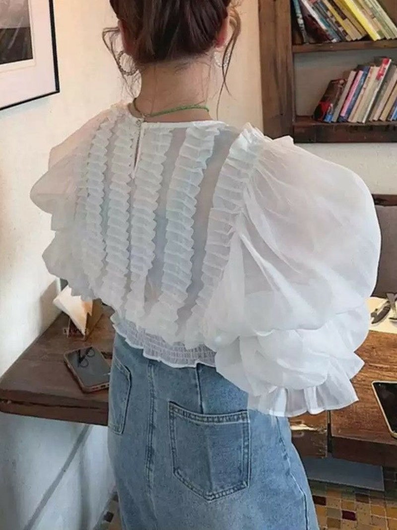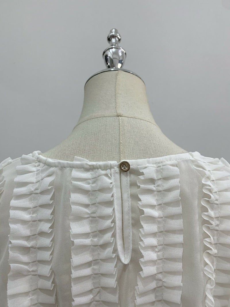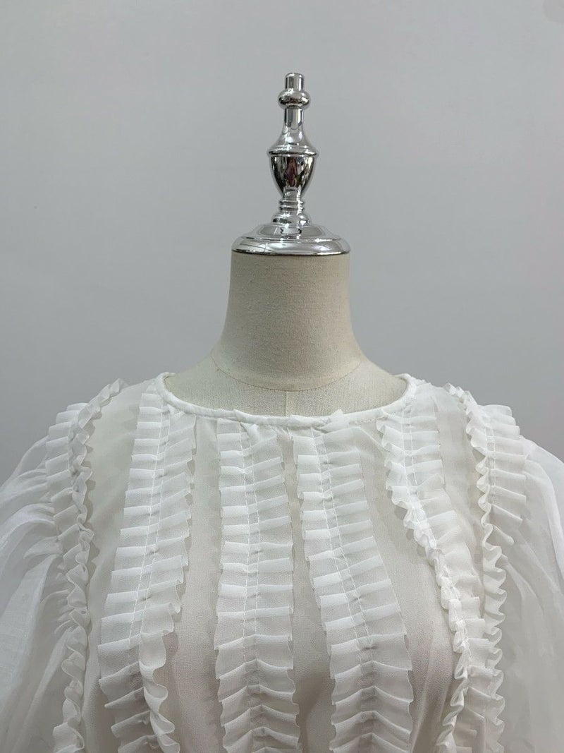 予約 2color シアー フリル キャンディー スリーブ トップス