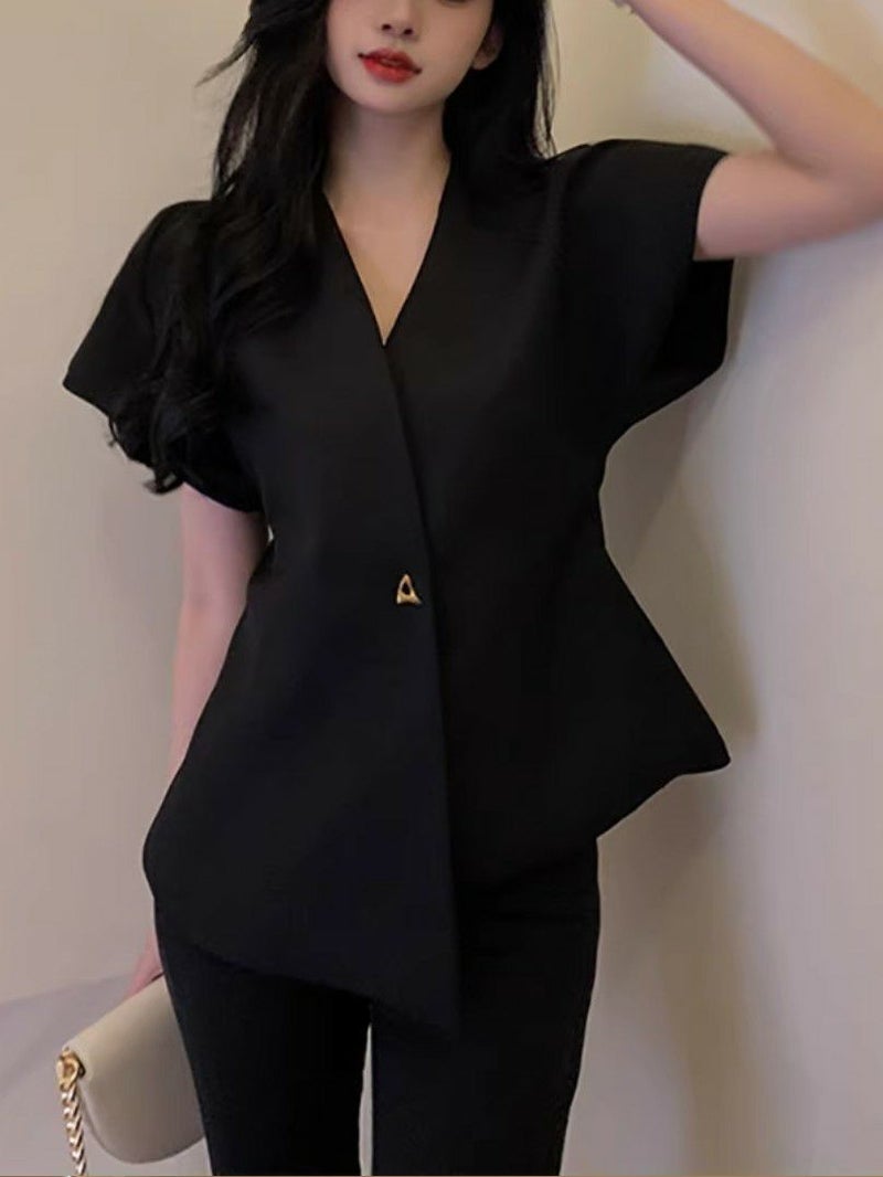 カシュクールデザインが大人っぽいトップス