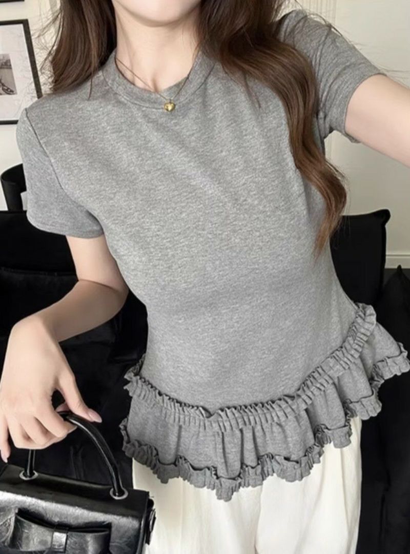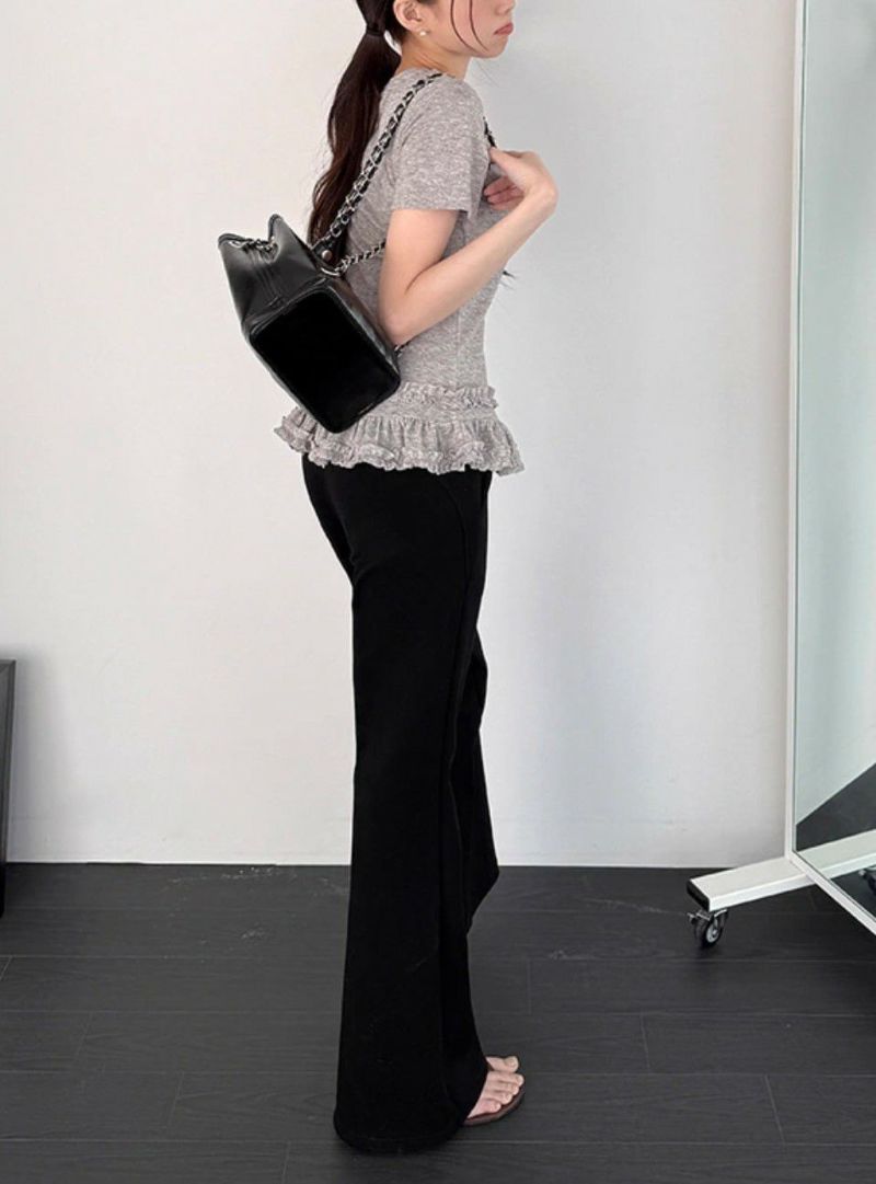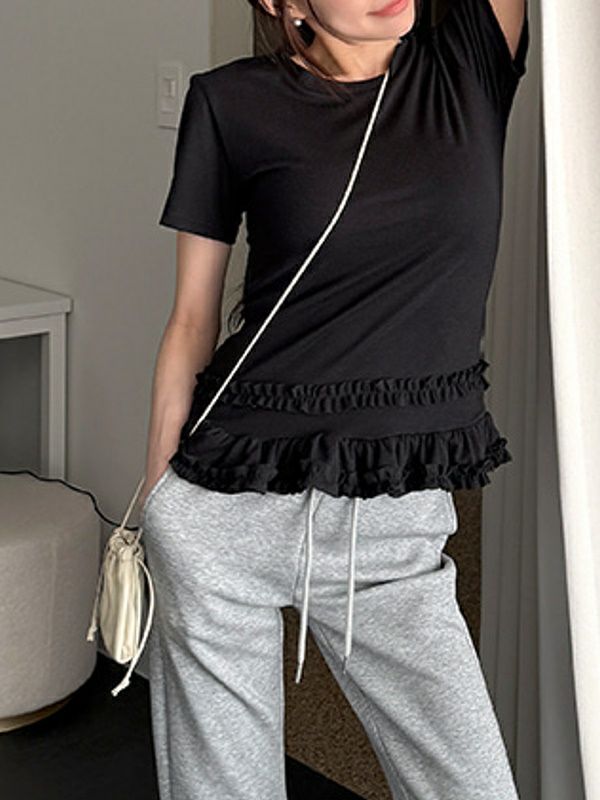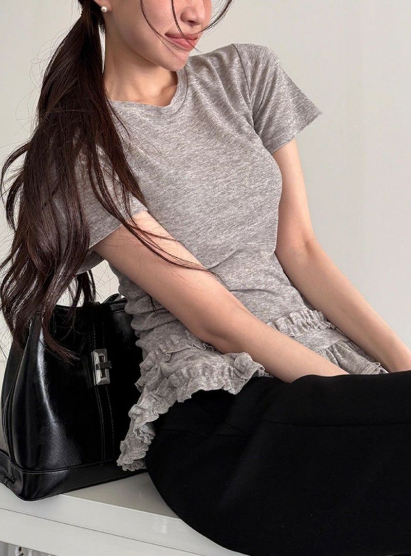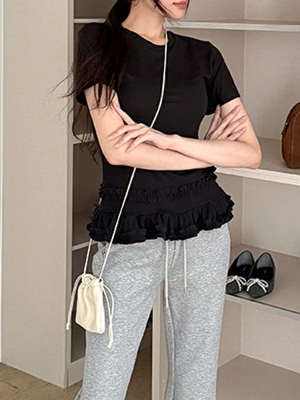 フェミニンなシルエットが魅力のフリル裾ペプラムTEE。