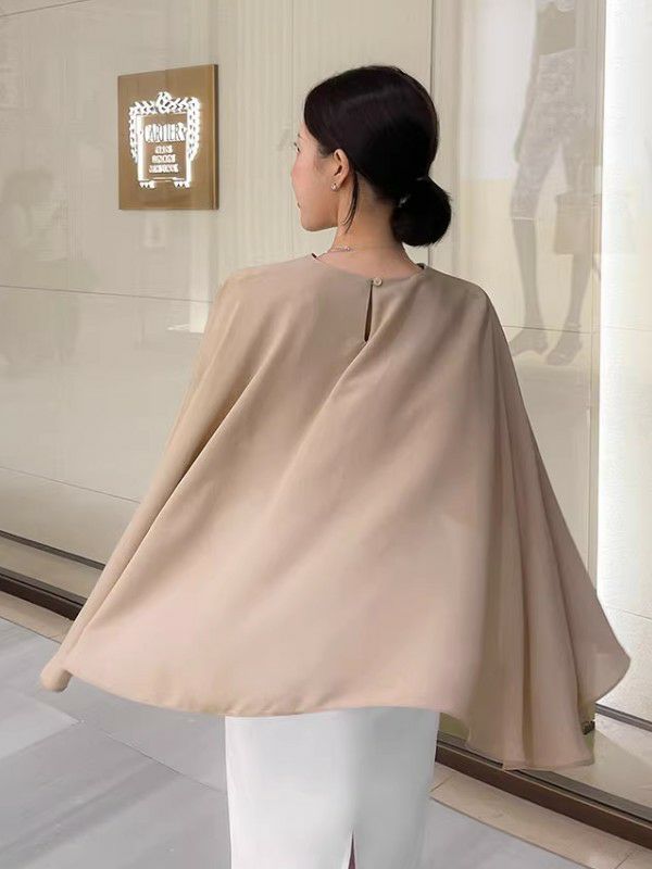 エレガントなケープ調デザインが魅力のクルーネックトップスです。