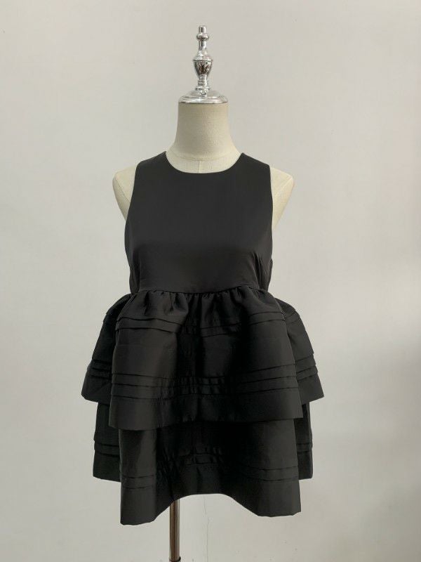 予約 2color ノースリーブ ボリューム ペプラムトップス