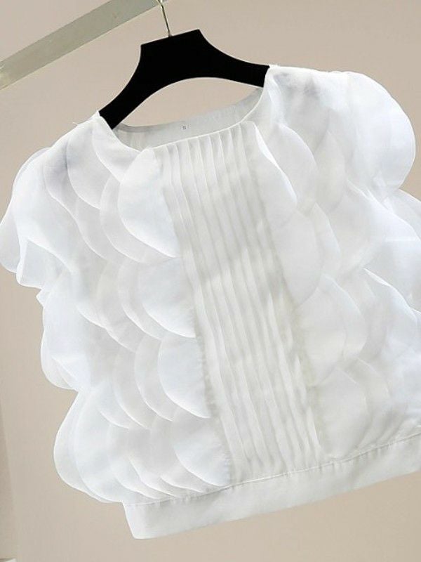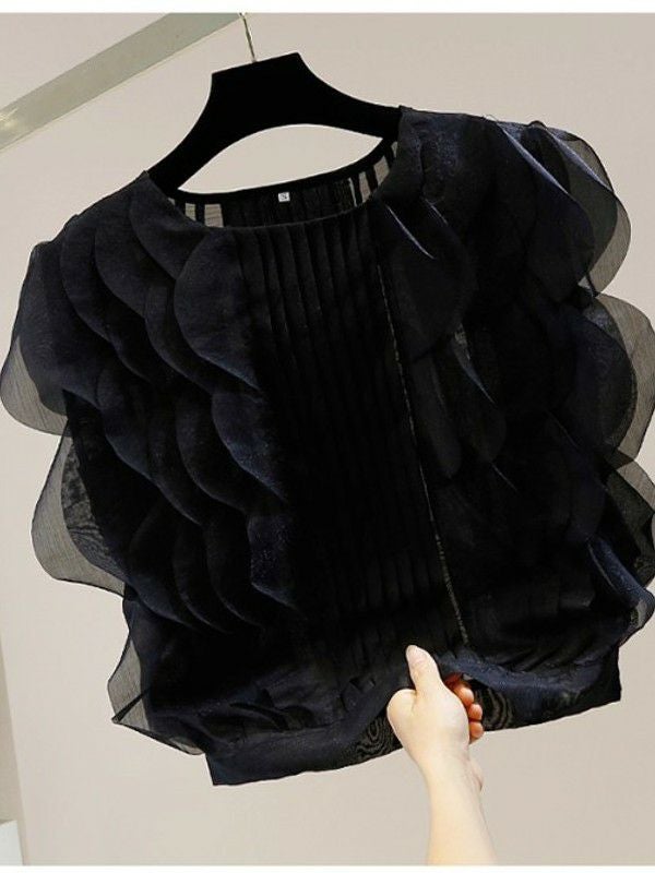 予約 2color プリーツ スカラップノースリーブ トップス