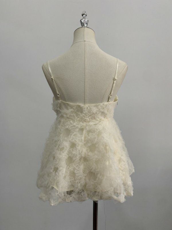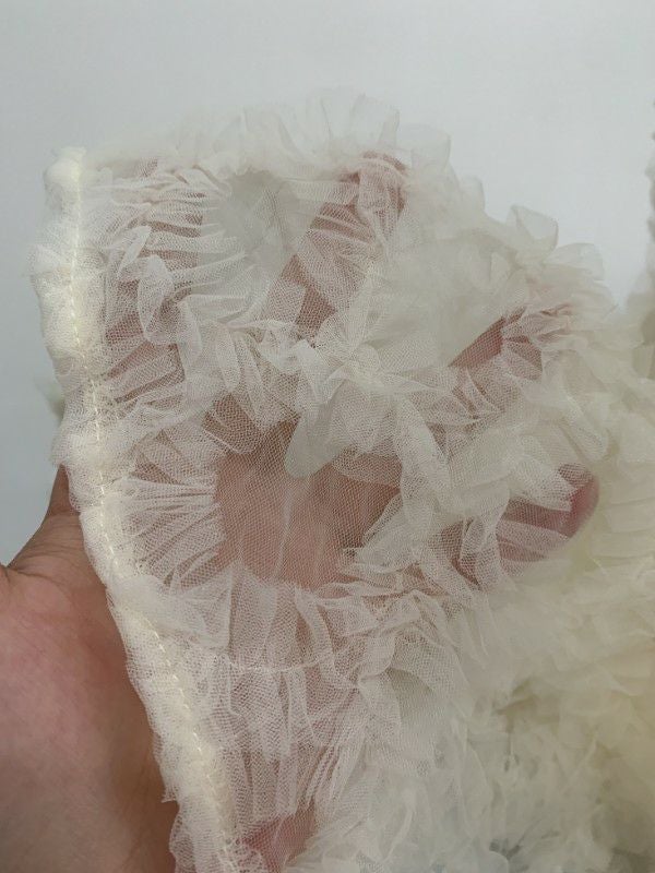 繊細なチュールの素材感が女性らしさを引き立て、柔らかなシルエットを演出します。