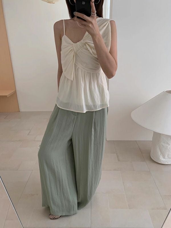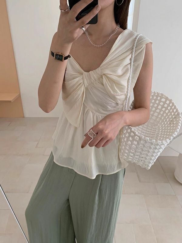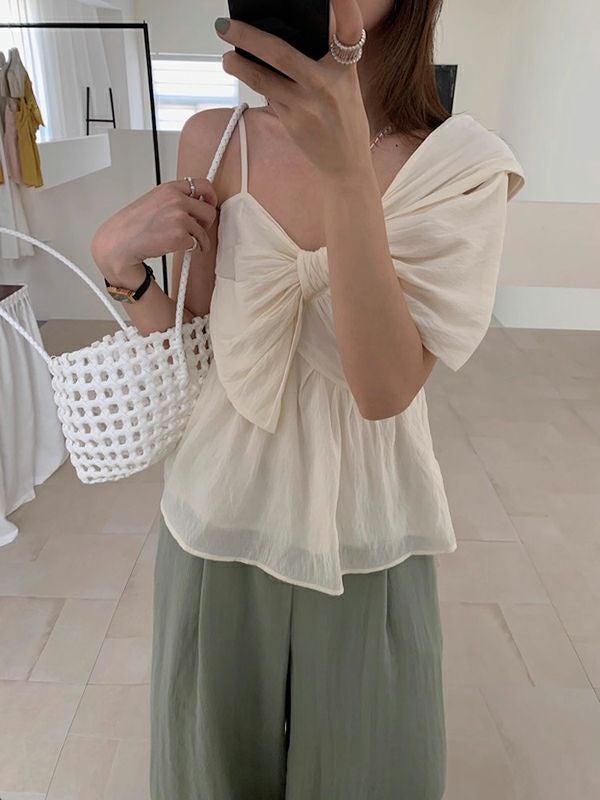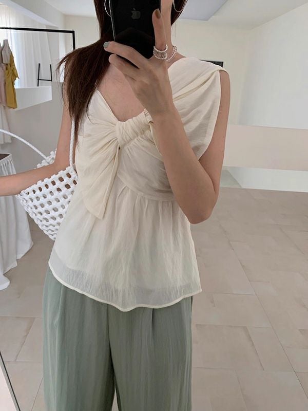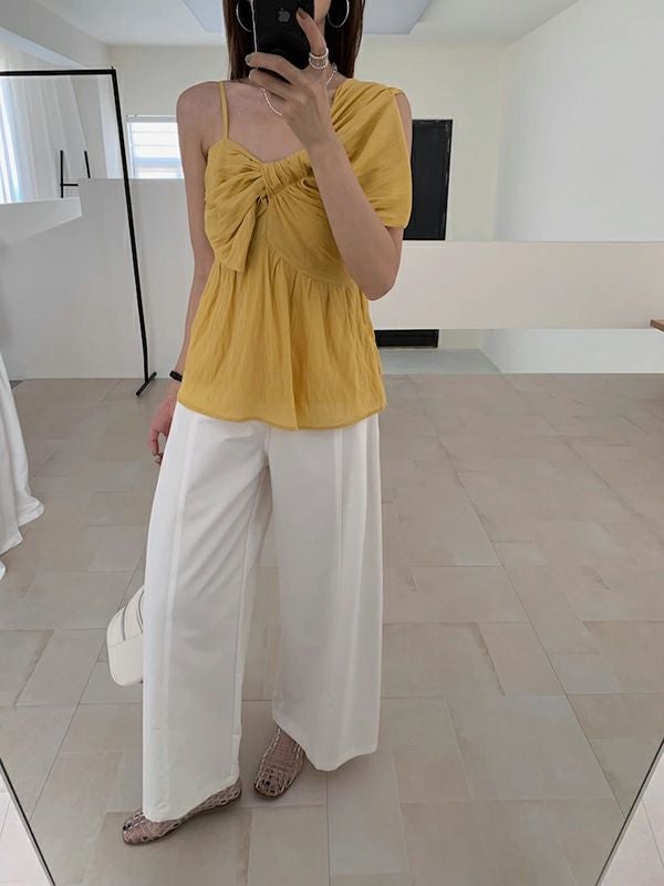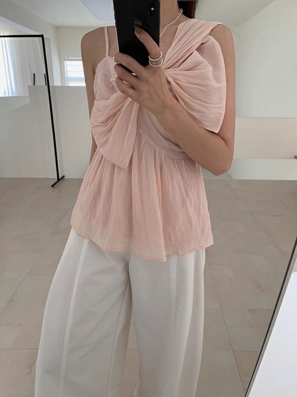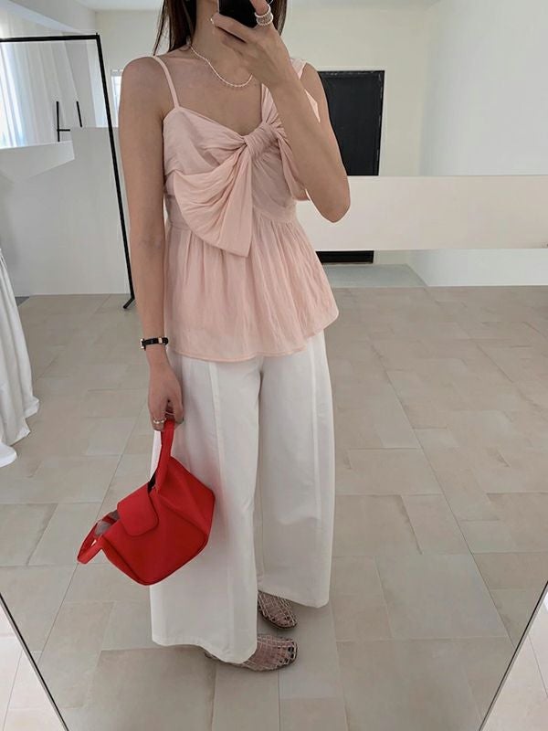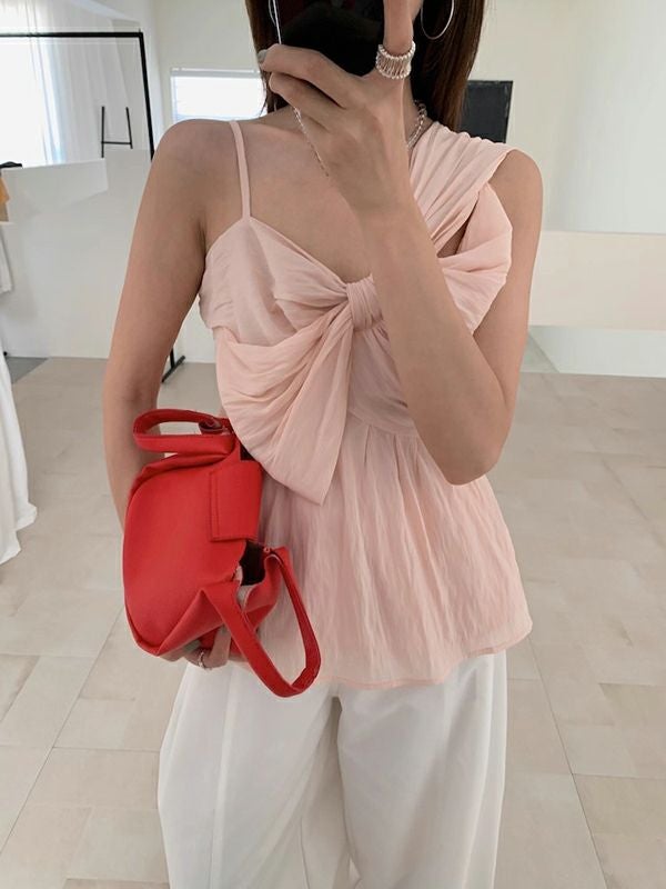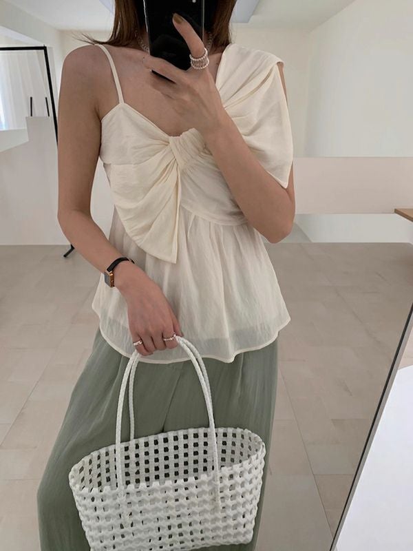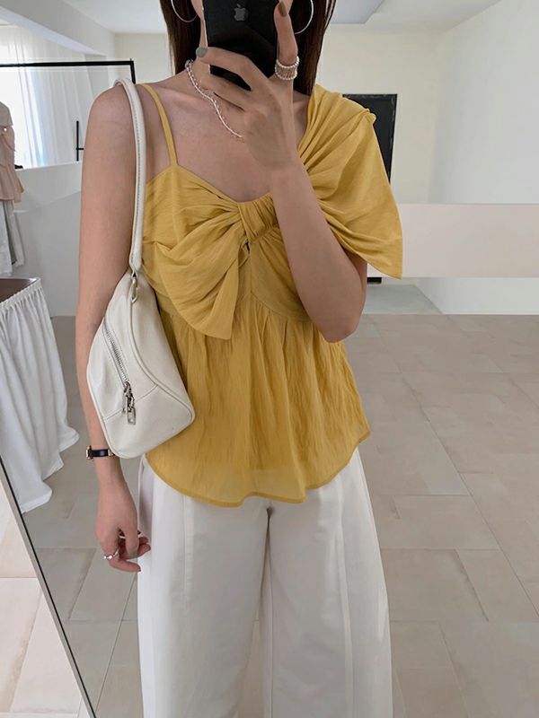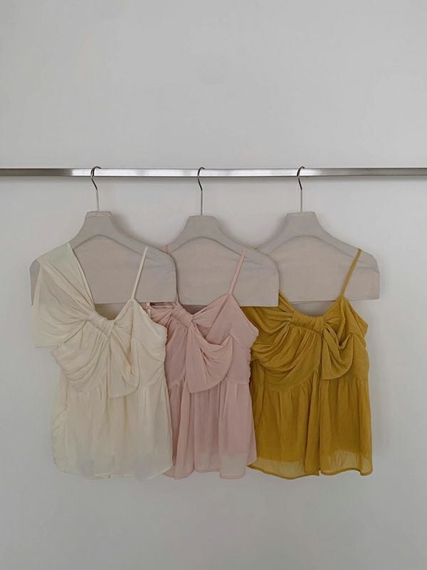 予約 3color アシンメトリー シアー リボン キャミソール