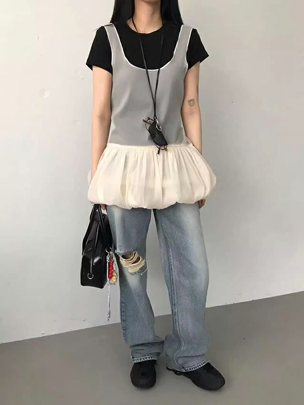 予約 2color シアー レイヤード バックリボン チュニックワンピ