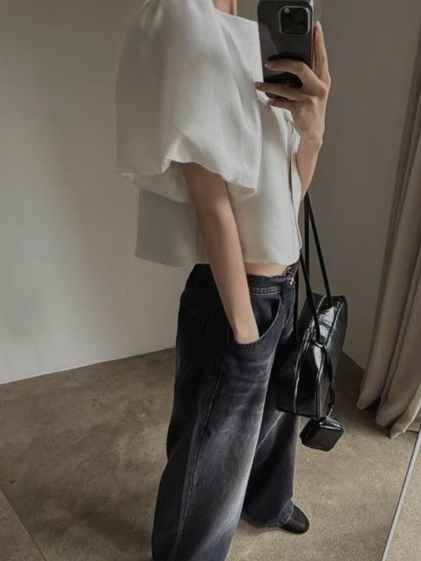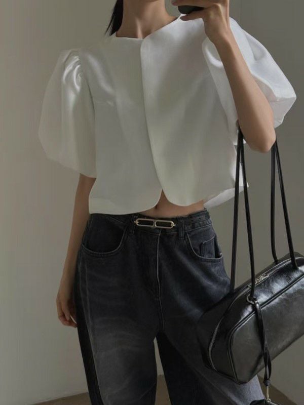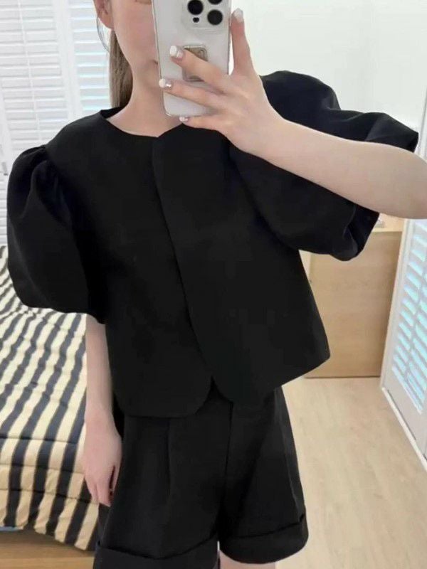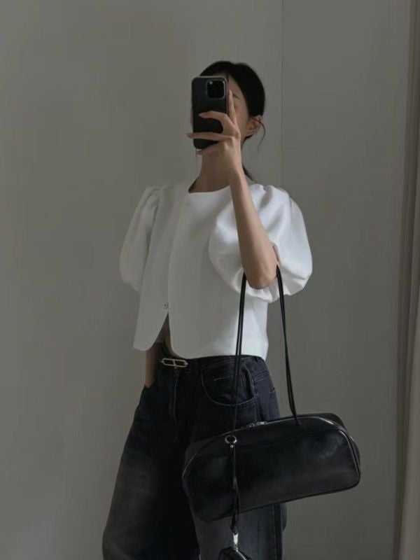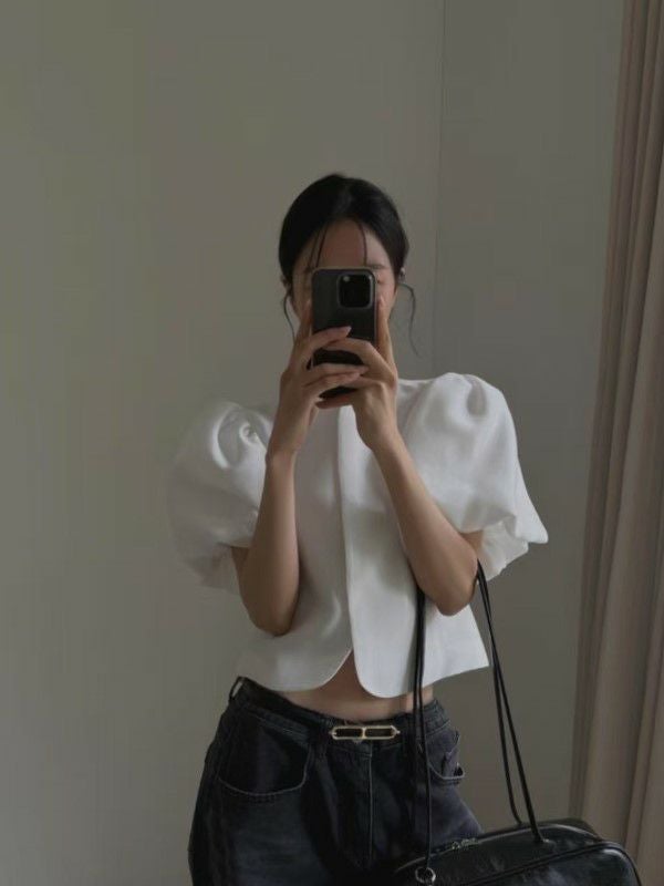 予約 2color パフスリーブ クルーネック トップス ジャケット