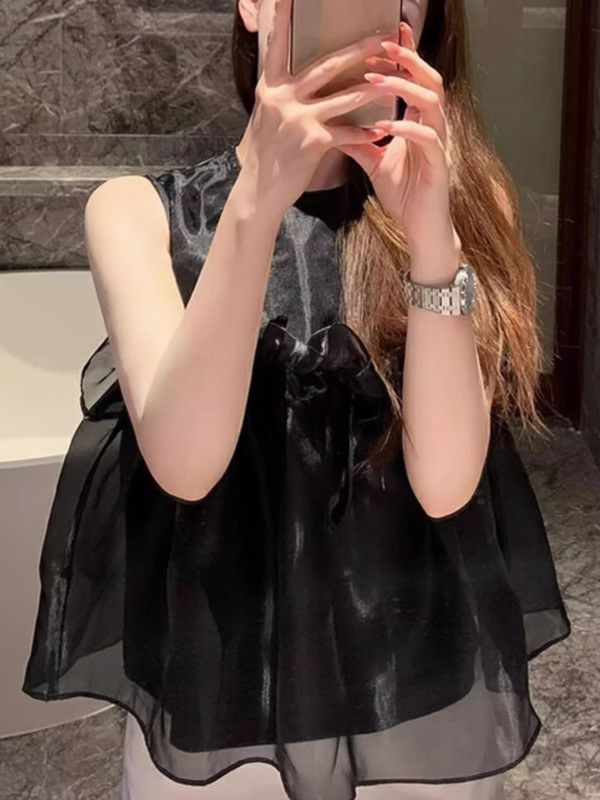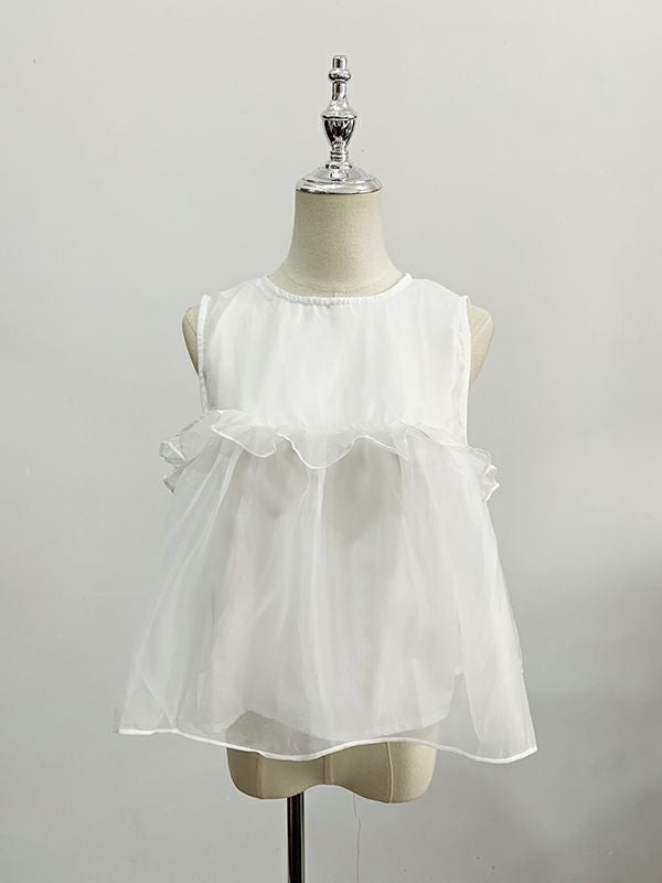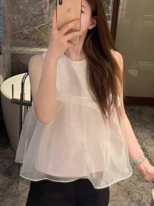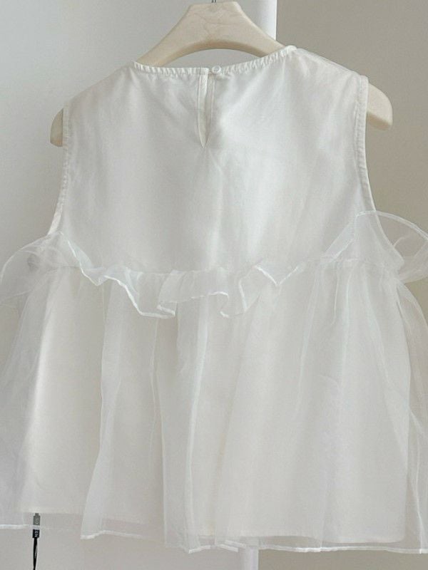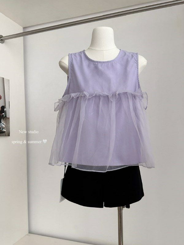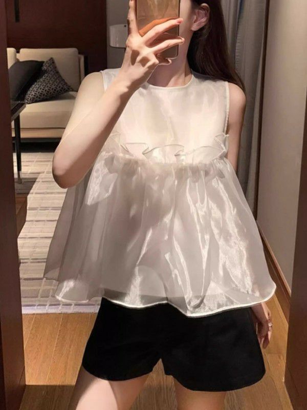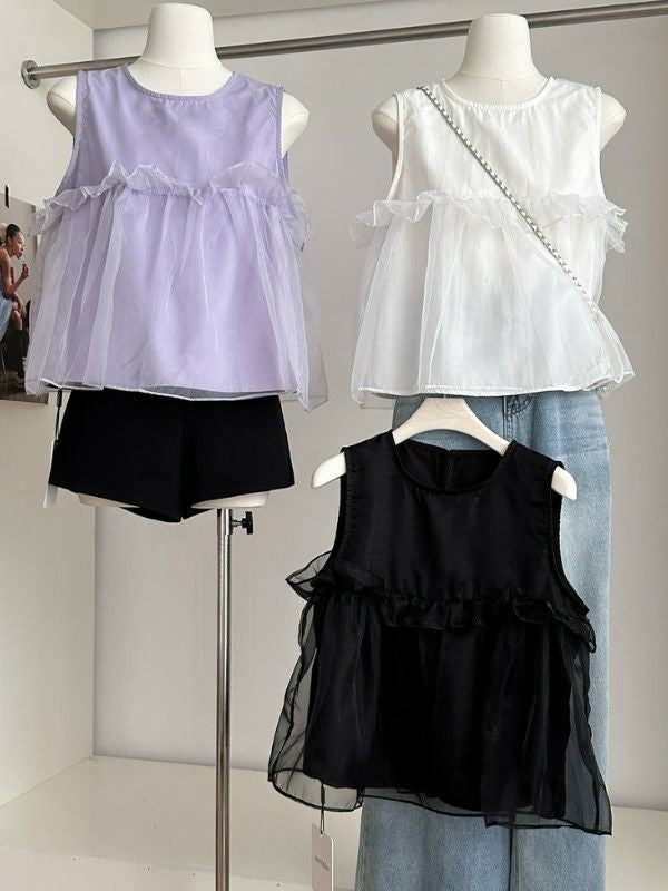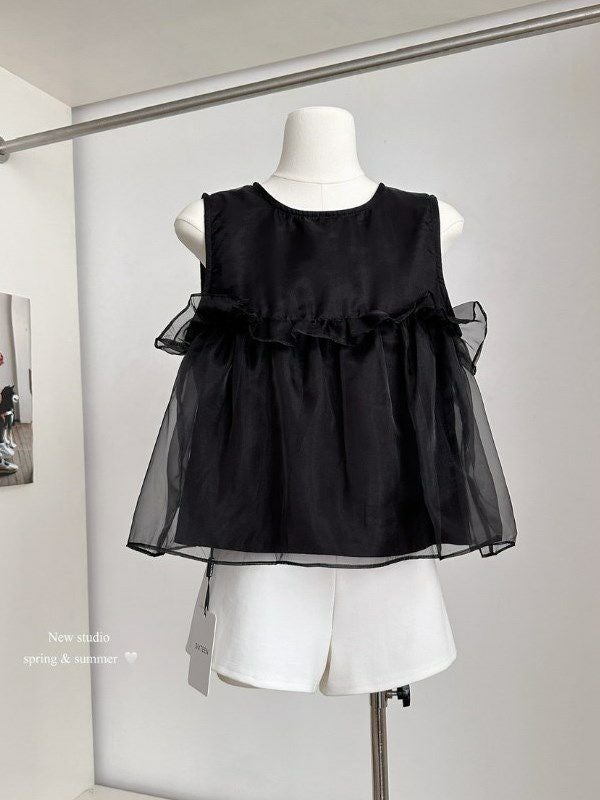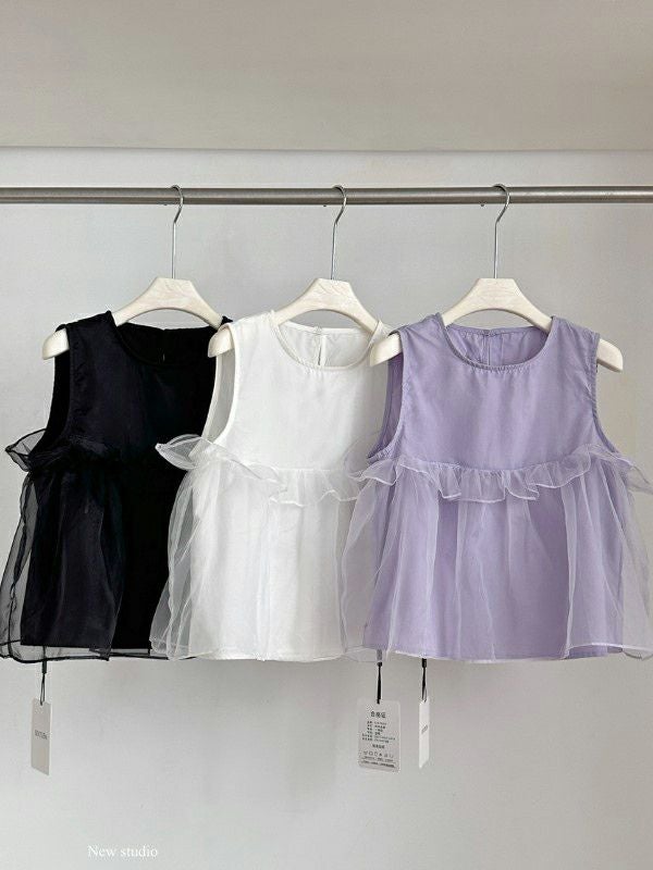 予約 3color オーガンジー フリル ノースリーブ トップス