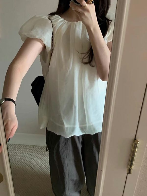 軽やかなシフォン素材が女性らしい抜け感を演出するブラウス。
