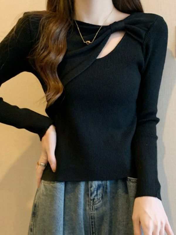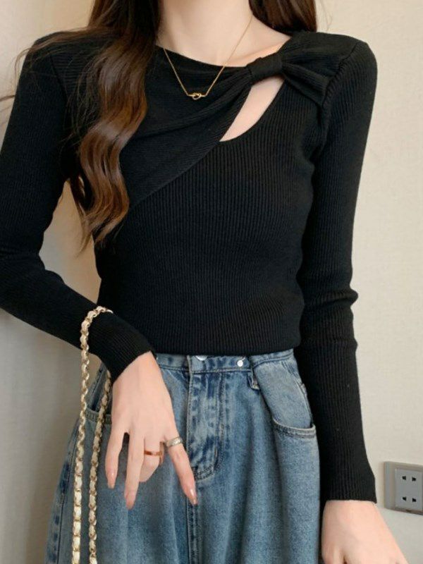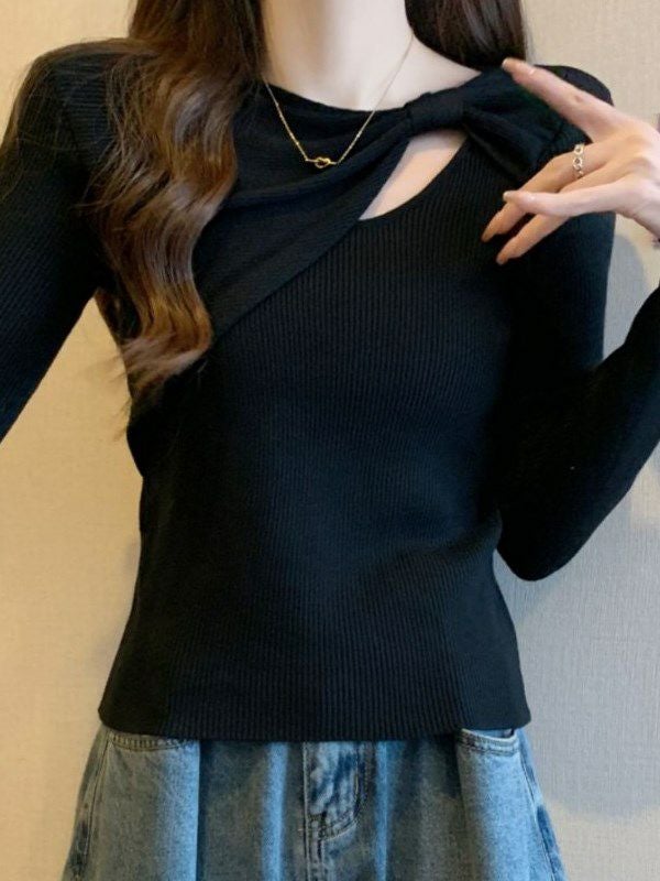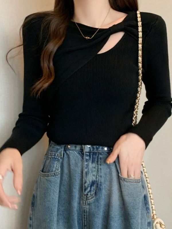 胸元のツイストディテールが視線を集めるデザインニット。