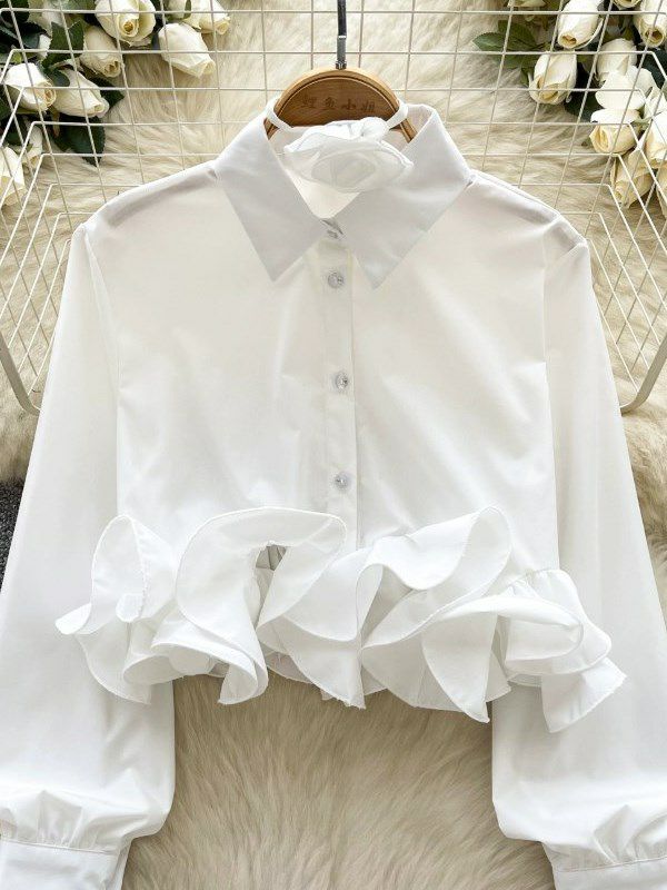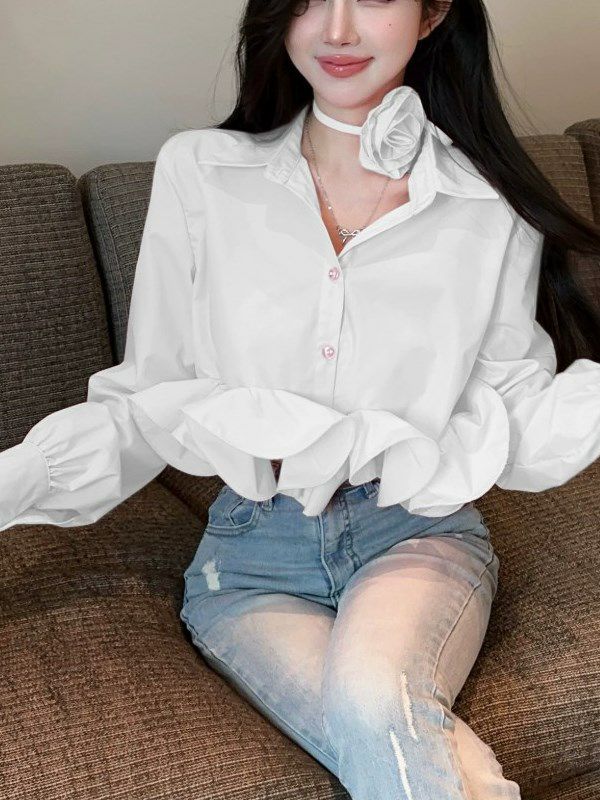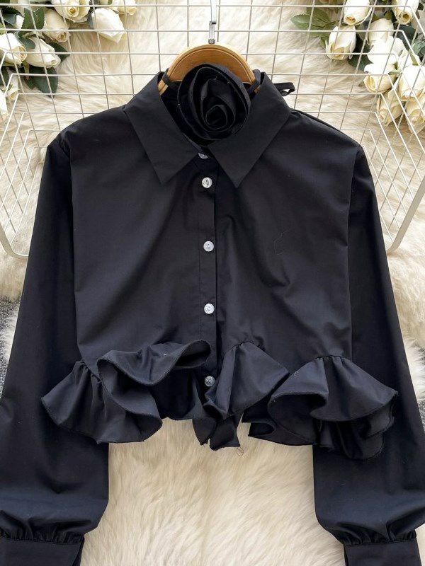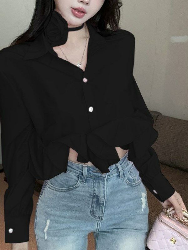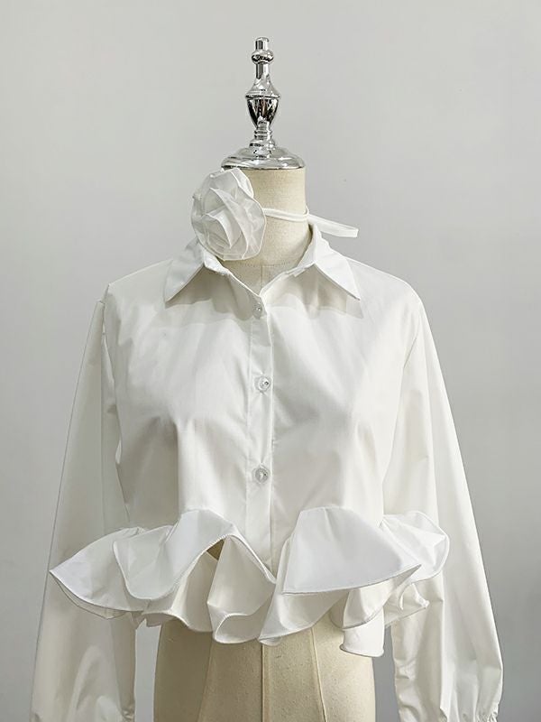 立体的なローズチョーカーが付属するデザインシャツ。