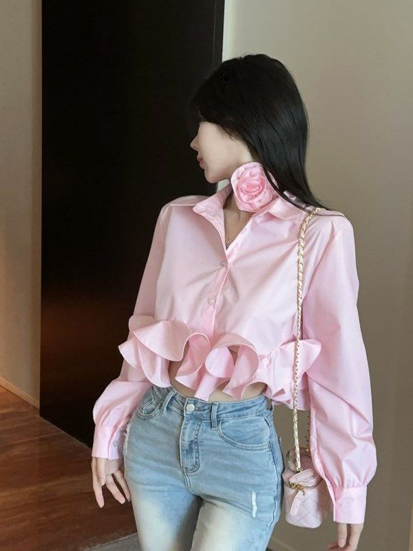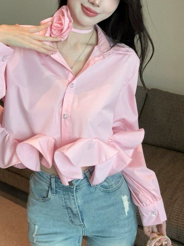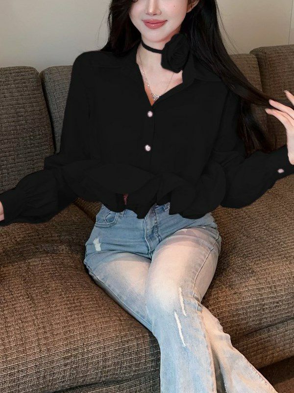 予約5color Rose Choker Shirt