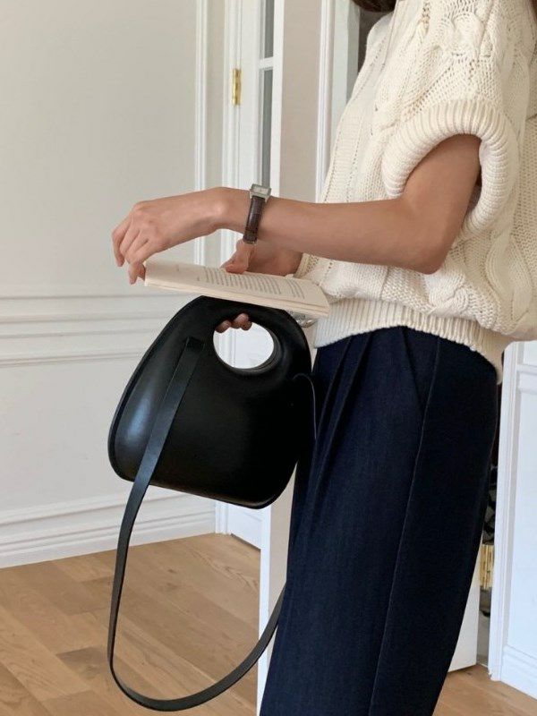 立体感のあるケーブル編みがシンプルなコーデに奥行きをプラス。