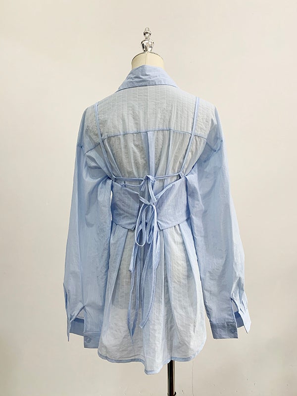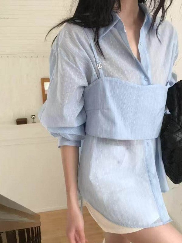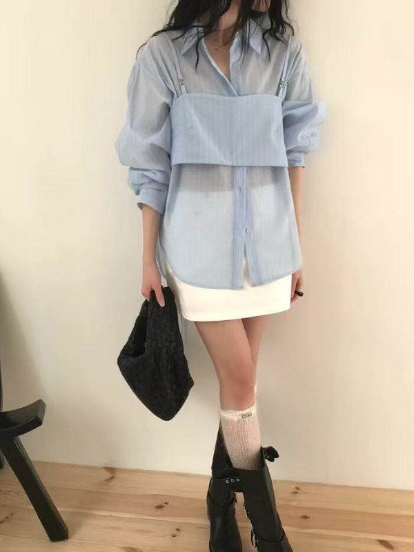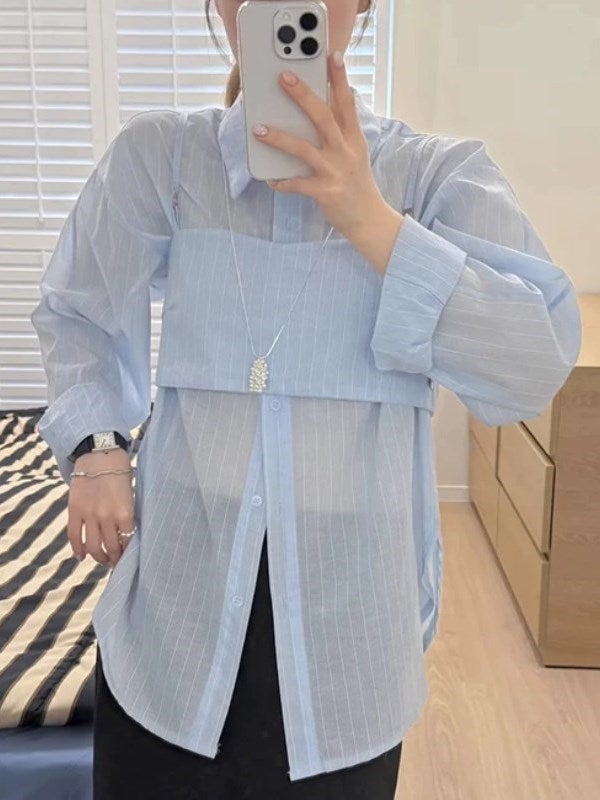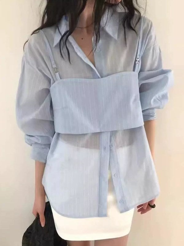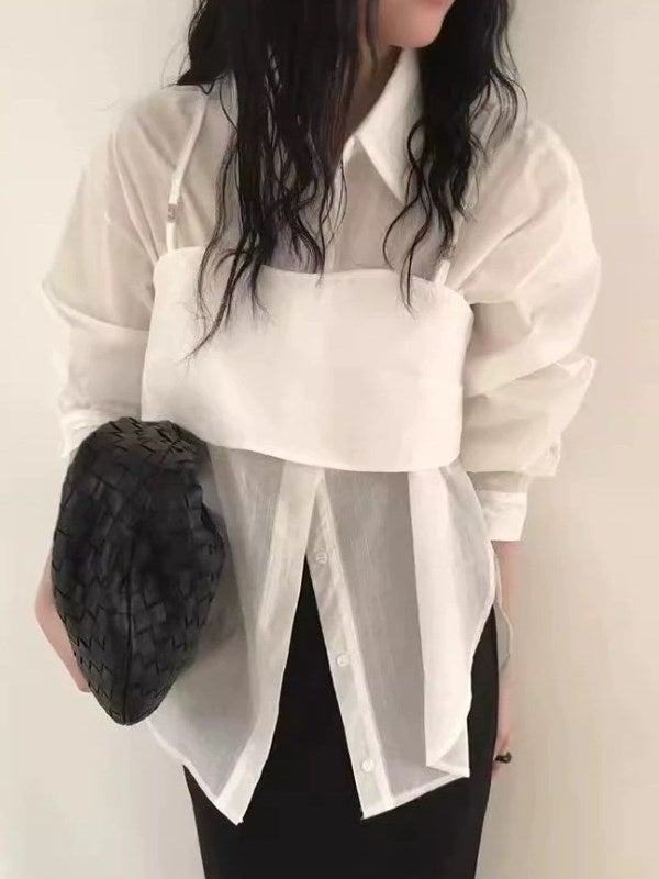 重ね着風デザインが目を惹く、トレンドライクなシャツトップス。