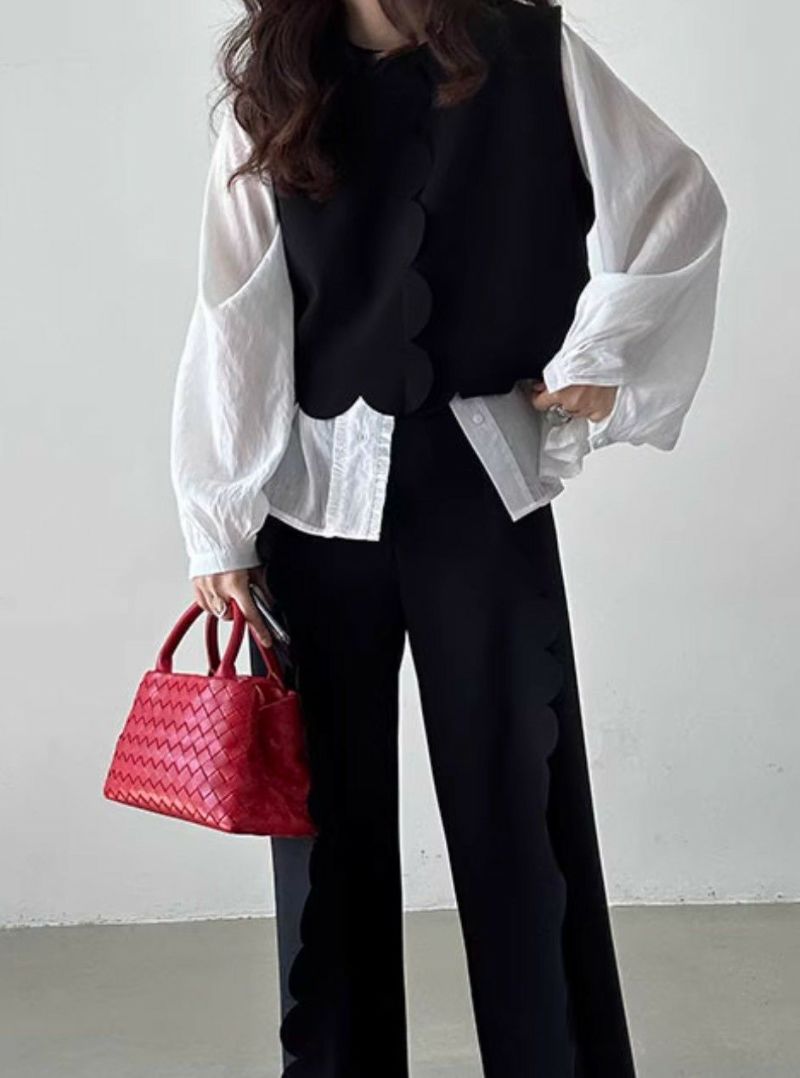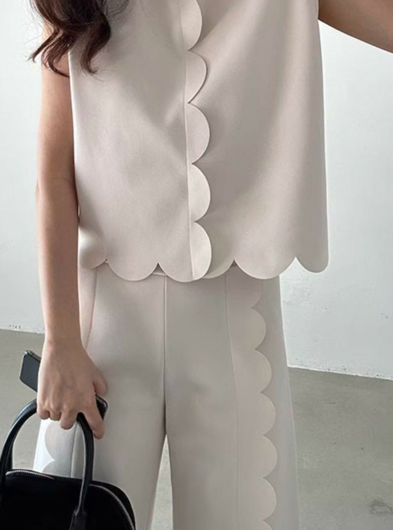 予約 スカラップ トップス ストレートパンツ セットアップ