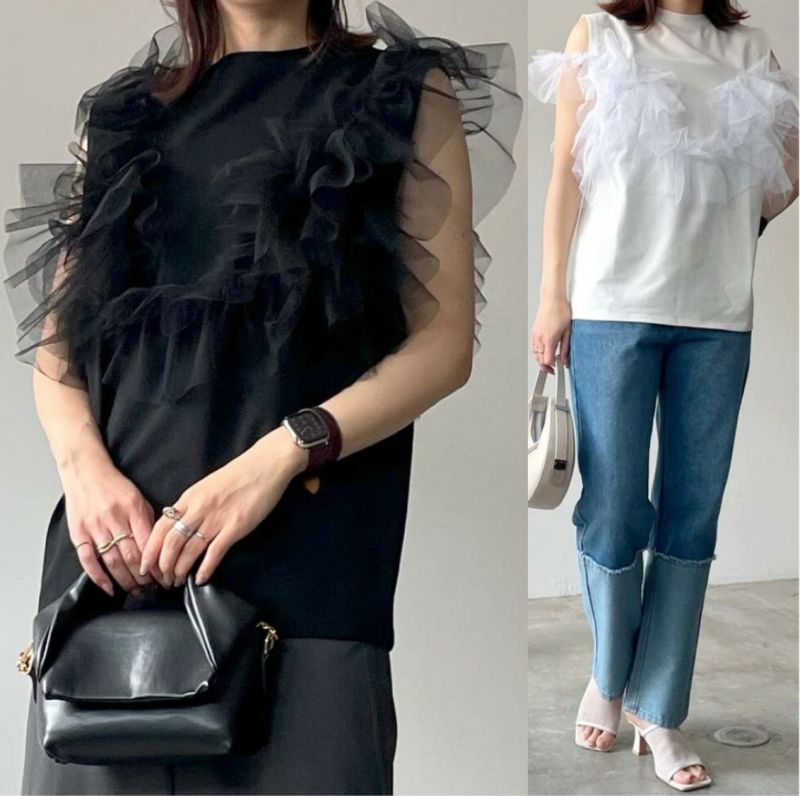 即納 3color 2WAY TULLE ストラップ プルオーバー