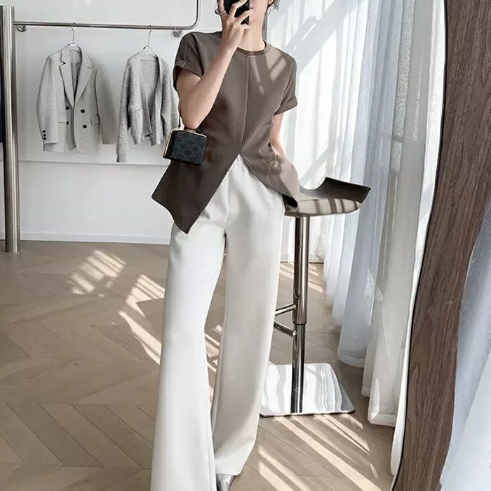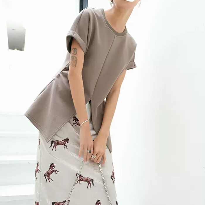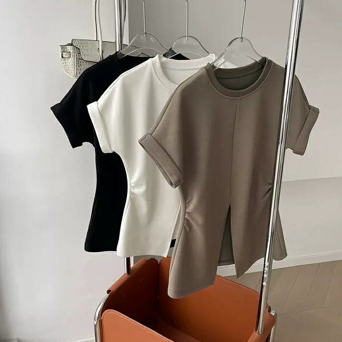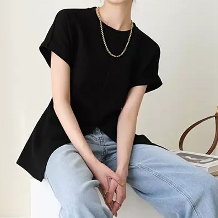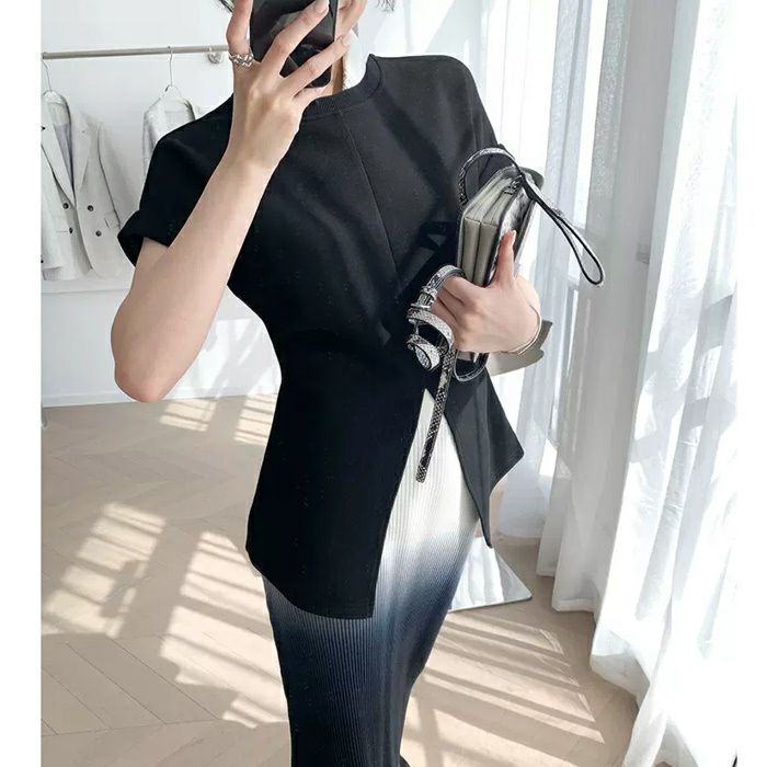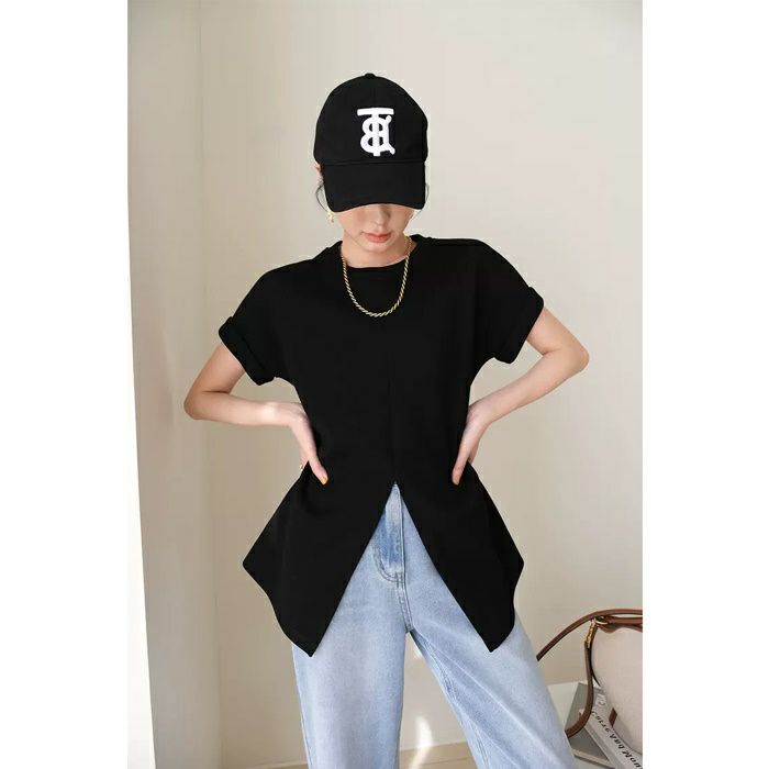 一部即納 3color フロント スリット ハーフスリーブ トップス