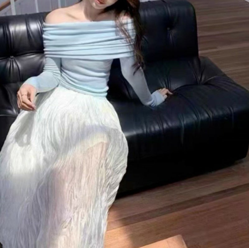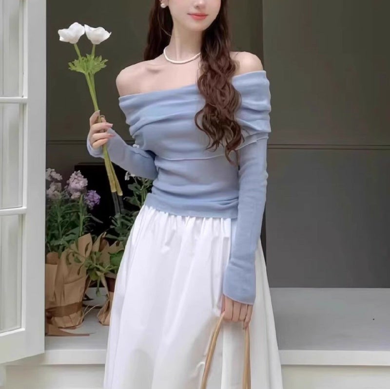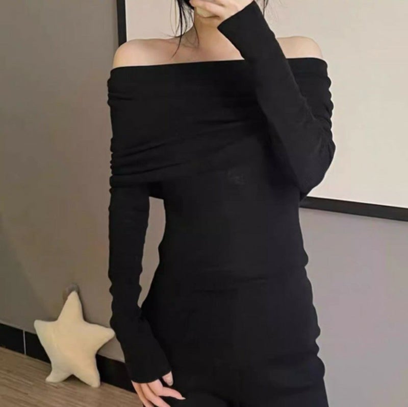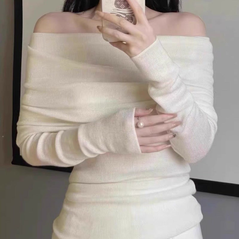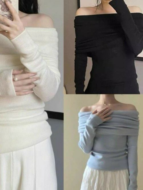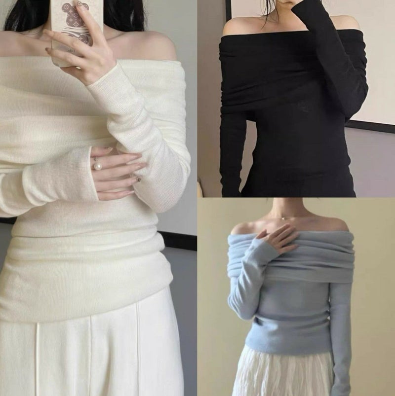 一部即納 3color オフショルダー フィット ロングスリーブ ニットソー