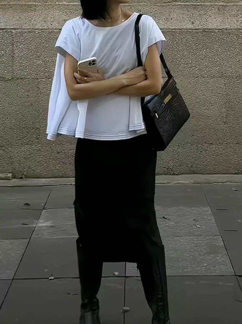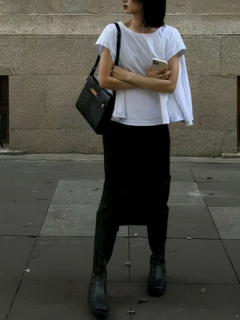 トレンドの短めな丈感がいつものコーデを一新します。
