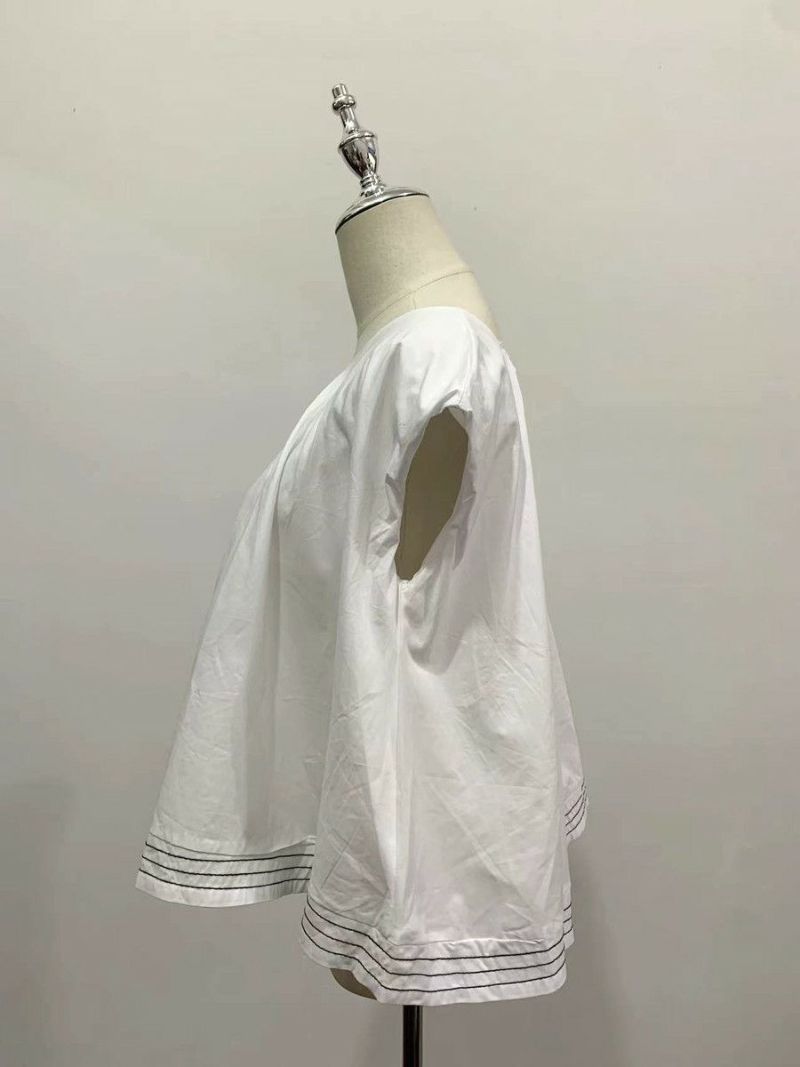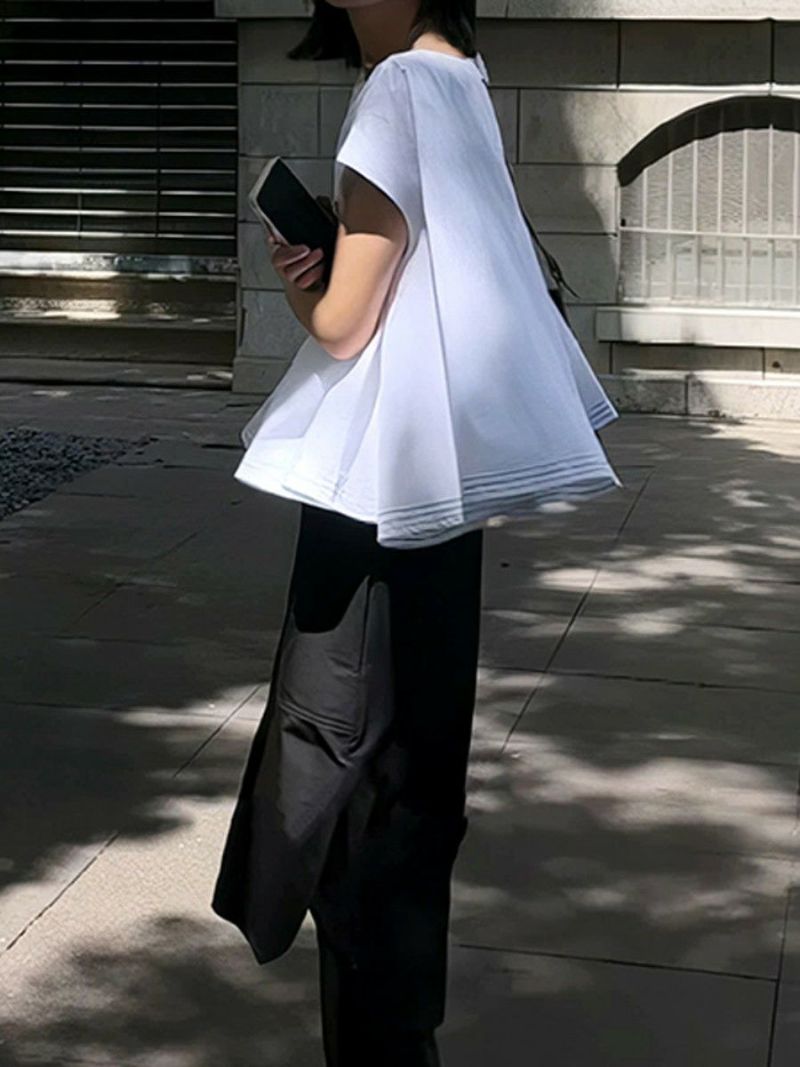 ボリューム感あるフレアシルエットのシャツプルオーバー