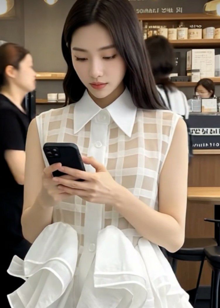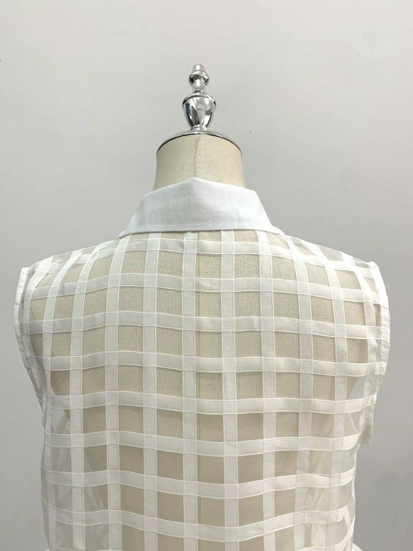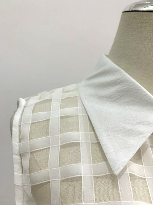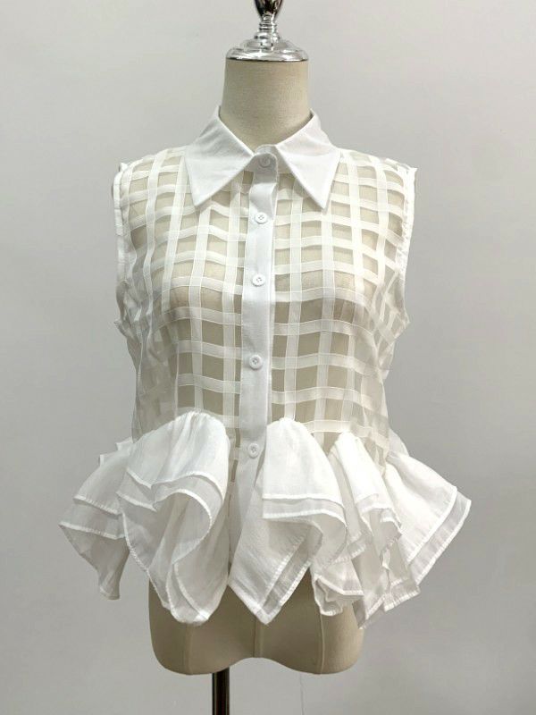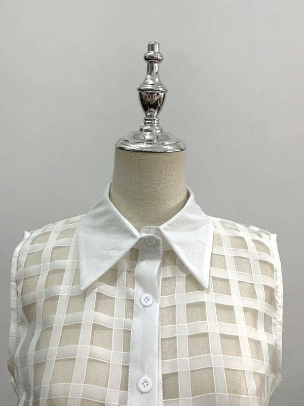 一部即納 2color 襟付き フリルノースリーブ チェックシャツ