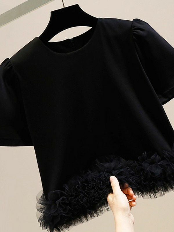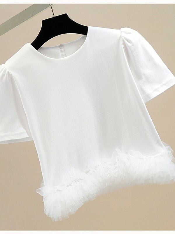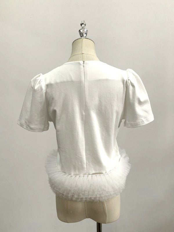 予約 2color パフスリーブTEE ドッキング チュール TOPS