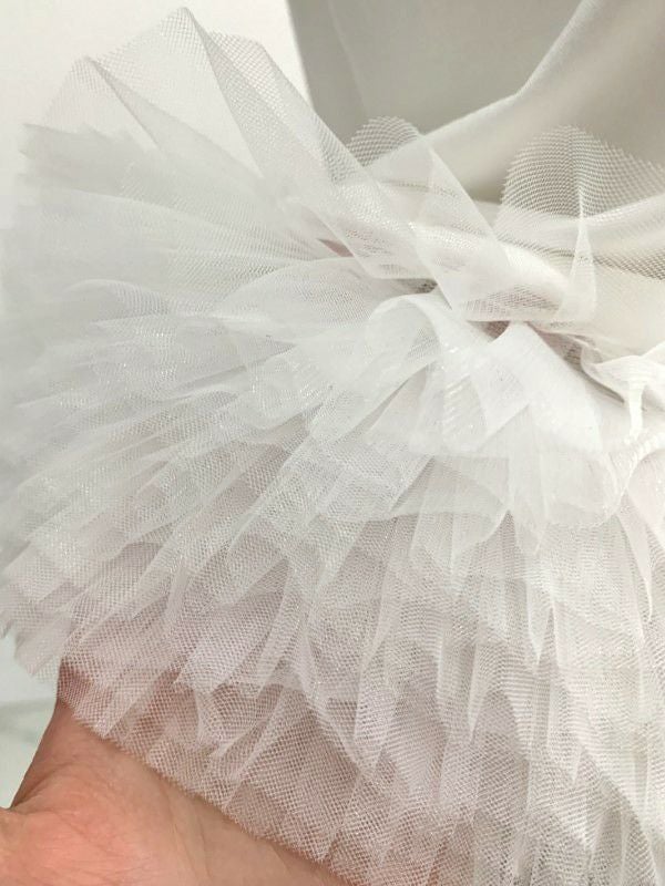 さりげないパフスリーブと裾のチュールが可愛い一着。
