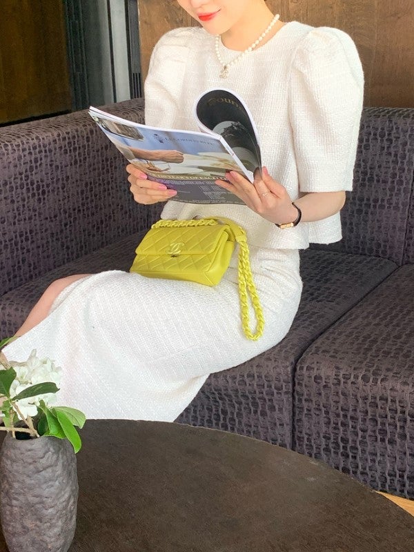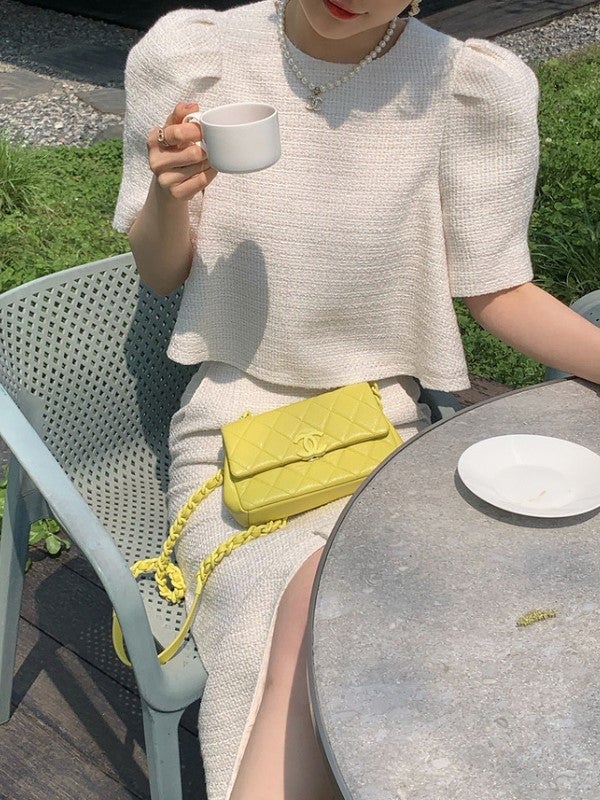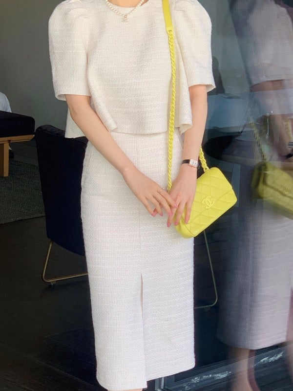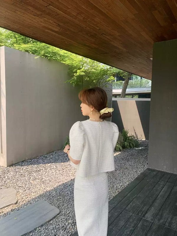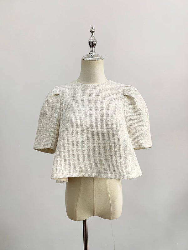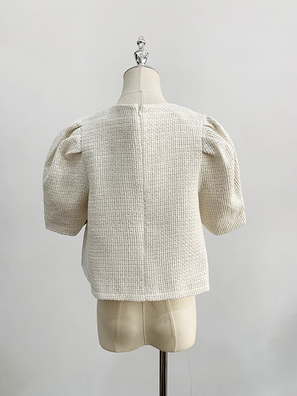 予約3color テクスチャード ツイードライク・ショートスリーブトップ