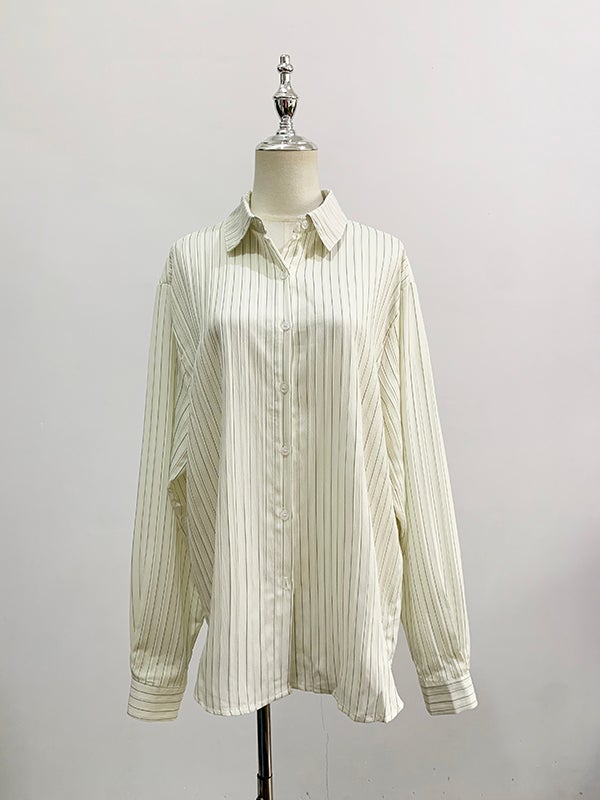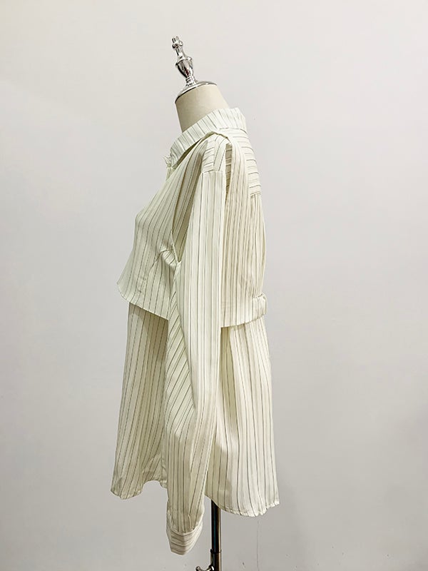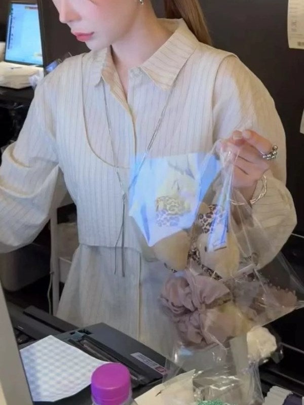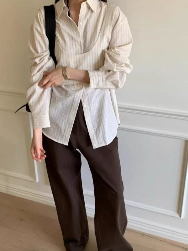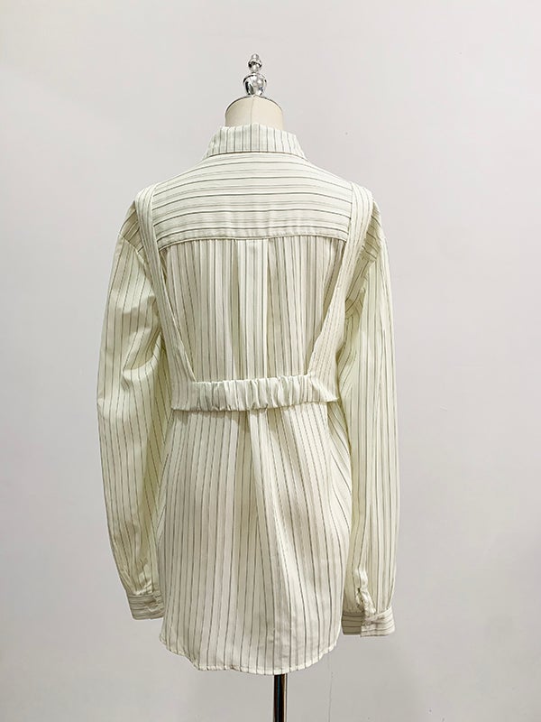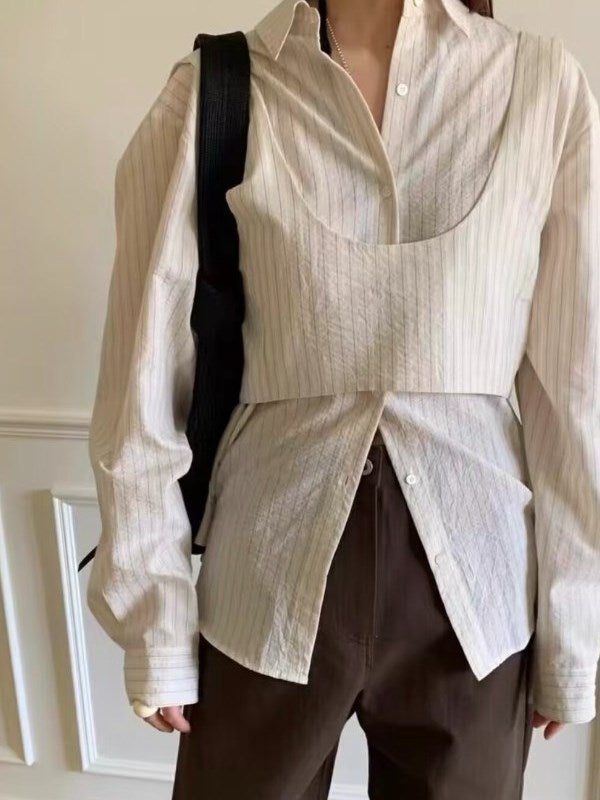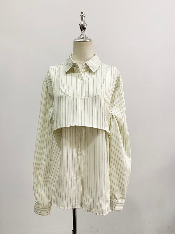 早期価格 予約 ストライプ レイヤード風 デザインシャツブラウス