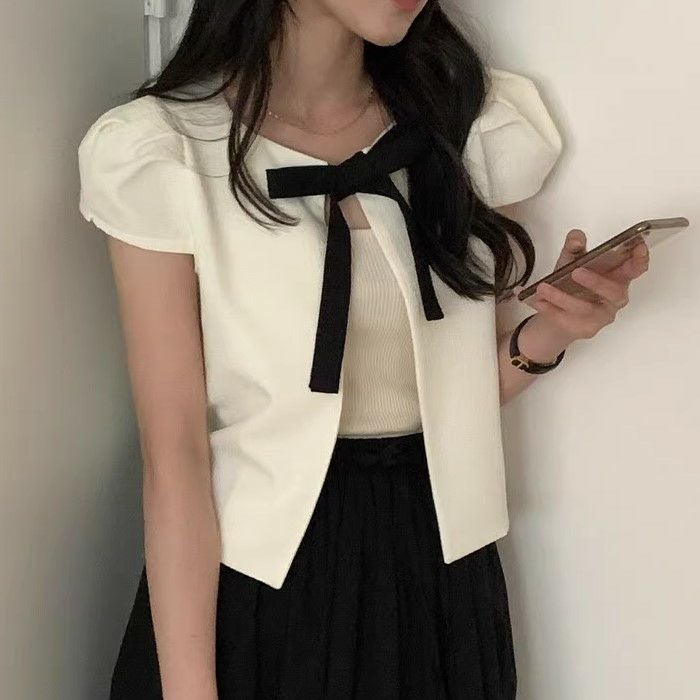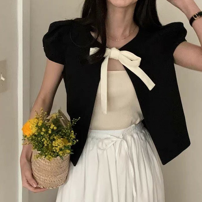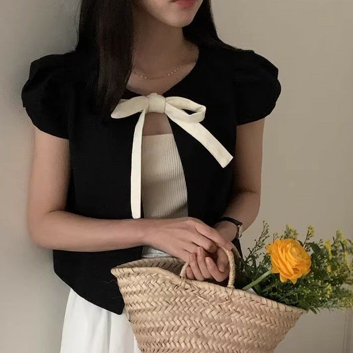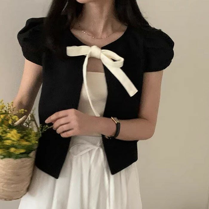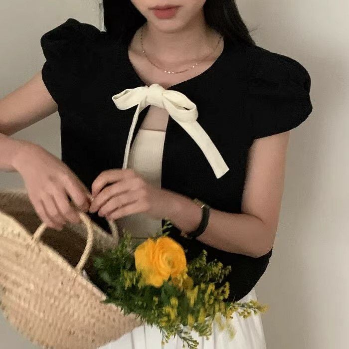 予約 2color Ribbon フロント オープン トップス