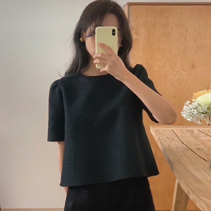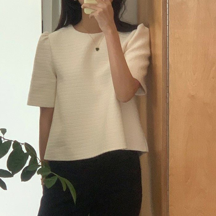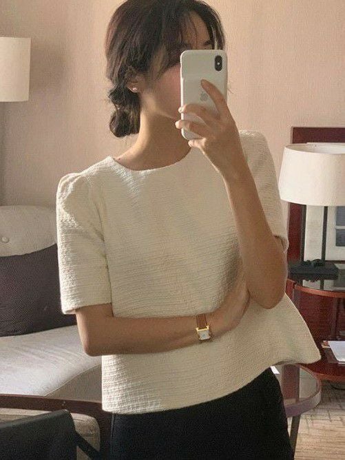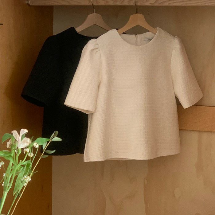 予約 2color ハーフスリーブ ツィード プルオーバー